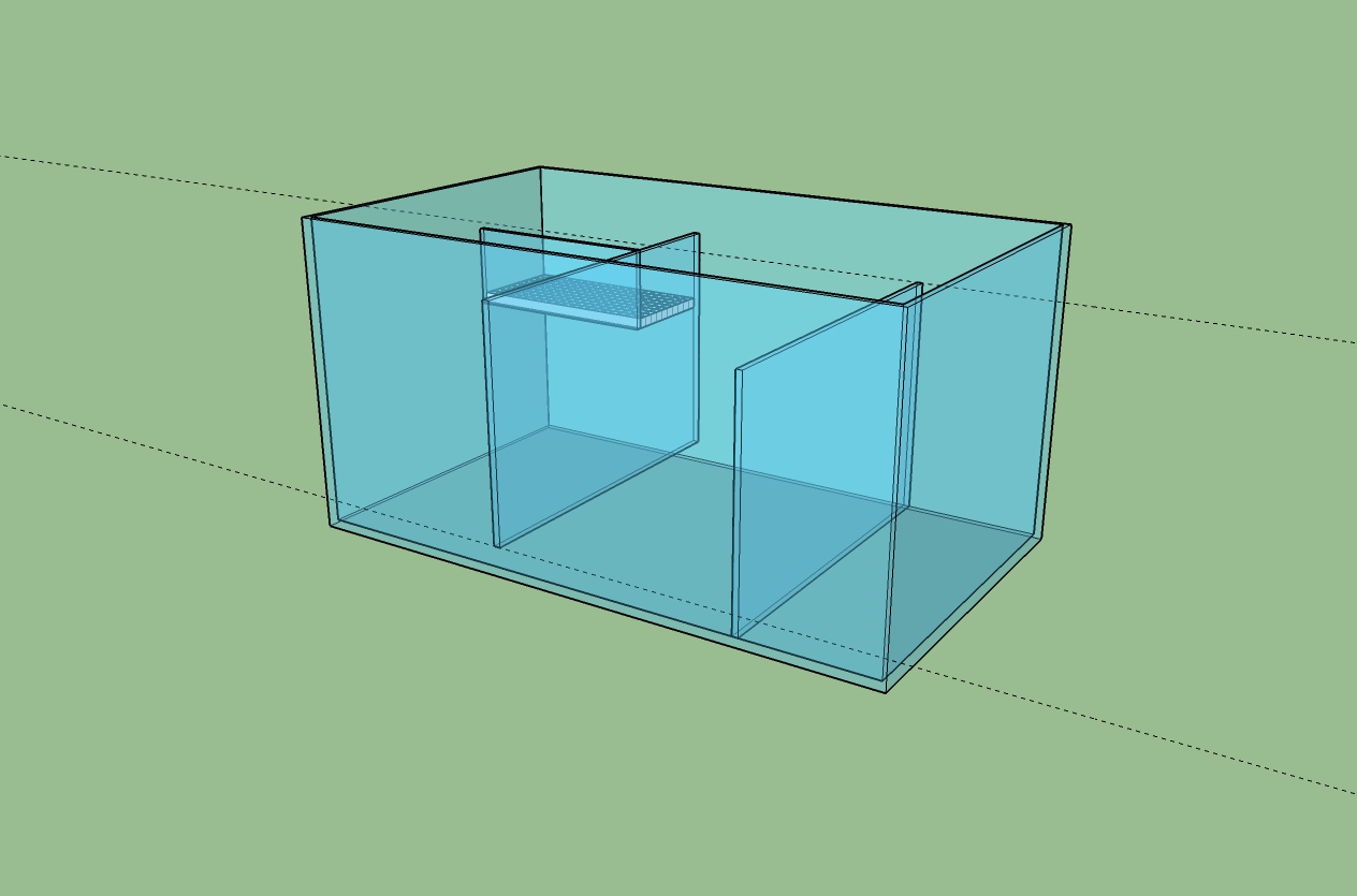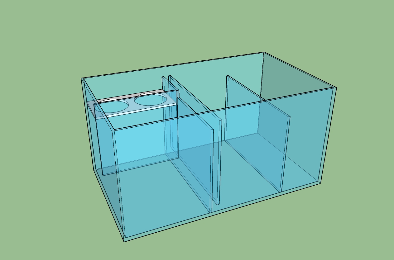 Добрый день! Т.е. первый отсек жк, делать перегородку для переход воды на верх во второй отсек, второй отсек пенник и по низу в 3 отсек на помпу...?