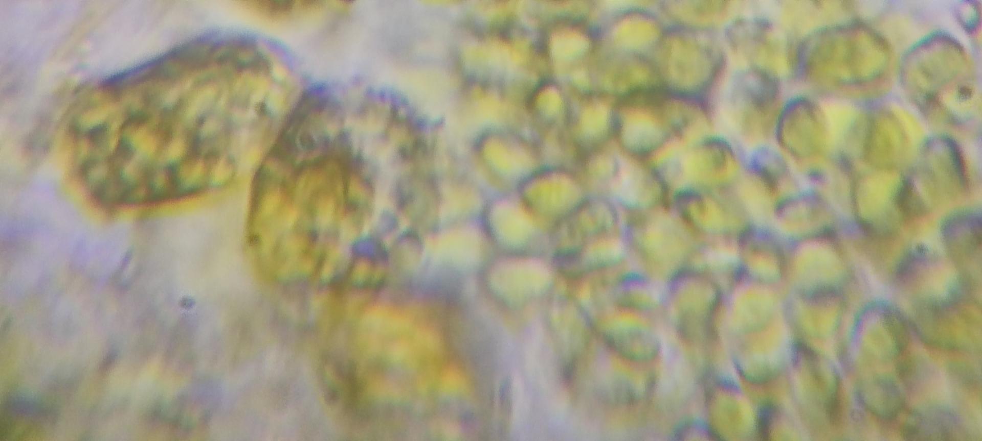 Остальные невозможно разглядеть - всё нерезко и в куче. Растирать надо образец с каплей воды так, чтобы клетки в поле зрения были по отдельности, а не густой кашей. Хотя, если остальное всё зелёное, можно не стараться, всё равно их по внешним признакам не опознают, там только через анализ ДНК. По внешнему виду можно определять в основном динофлагелляты и диатомы - у них много устойчивых морфологических черт и среди них есть доступные для оптического микроскопа. Хотя для большей части нужен уже сканирующий электронный. В случае же с зелёными и он бесполезен.
