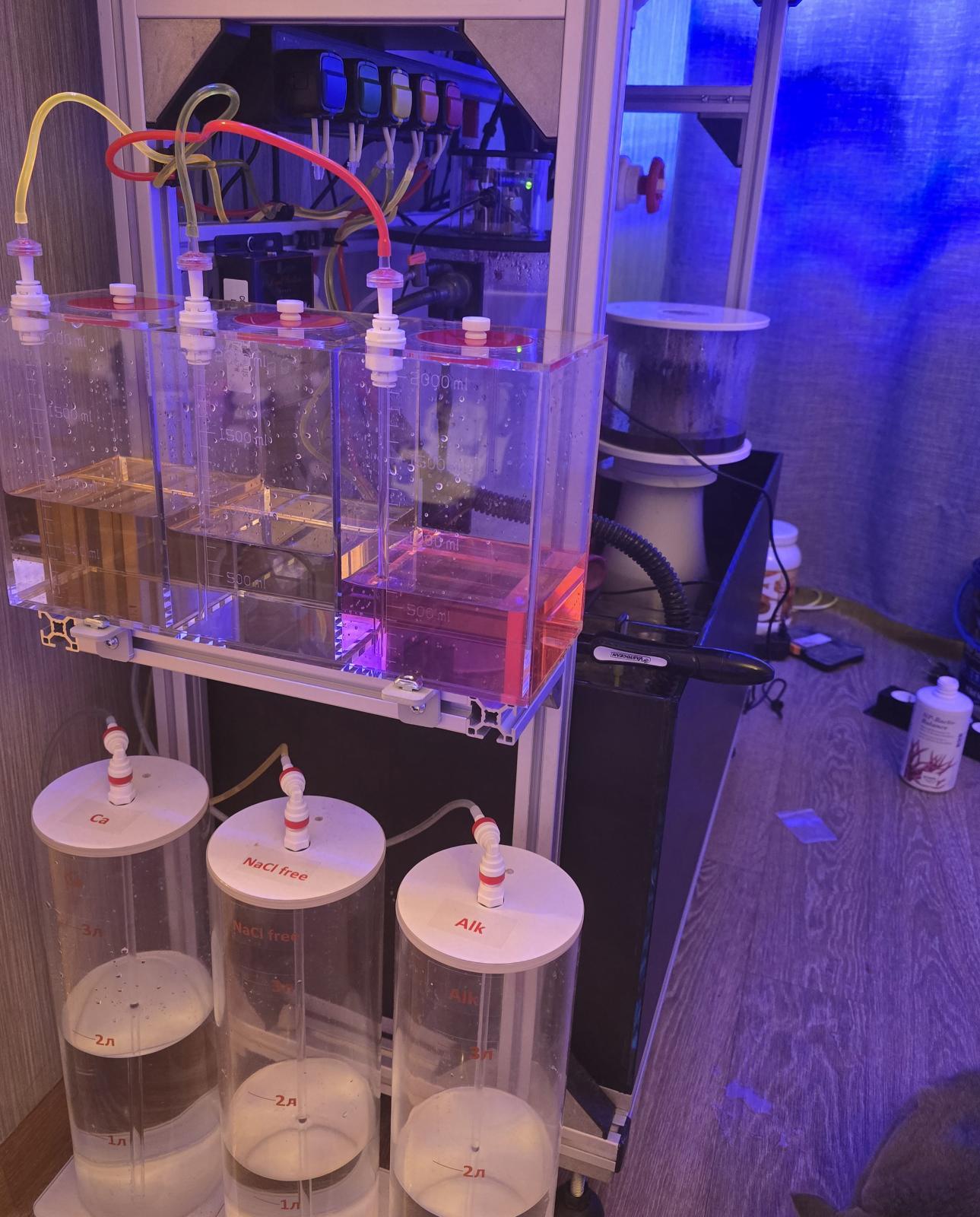 Добавок куча, а рук всего две. В общем решил все автоматизировать. Еще не хватает на фото пары бутылок К+/А-, мог бы их в баллинг лить, но он только частично используется из за мешалки. Бонусом достаточно точный датчик температуры. Теперь даже вне дома я вижу температуру в системе.