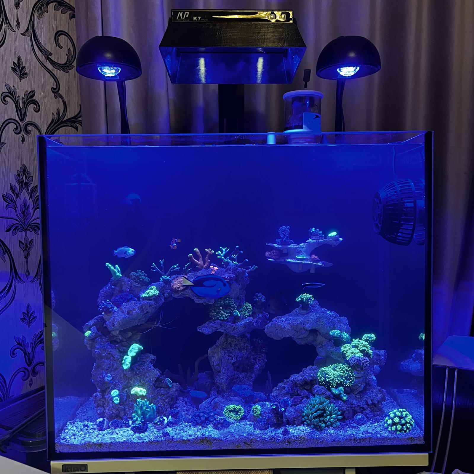 Цена с гидробионтами обсуждается отдельно, но думаю около 85000. Есть хорошие дорогие кораллы.