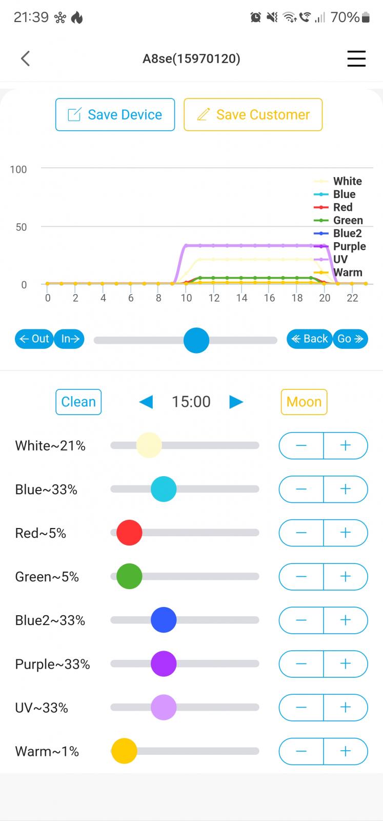 Я бы не стал заморачиваться так глубоко. Дмитрий когда то еще для старых моделей своих давал подход к настройкам, думаю вполне можно ими руководствоваться. В случае вашего светильника Green, Red и Warm могут быть на любой мощности на ваш ВЗГЛЯД, ни на что не влияют. White - 2/3 от Blue. Purple - хоть на 100%, тоже на ВЗГЛЯД по флюру. Остальные каналы поставьте одинаково с Blue и не парьтесь. Если светильник может выдавать красивую картинку - он ее выдаст при таком подходе. Просто не все могут, и конечно не получится сделать картинку как у более продвинутых светильников. Да оно и не надо, как правило.