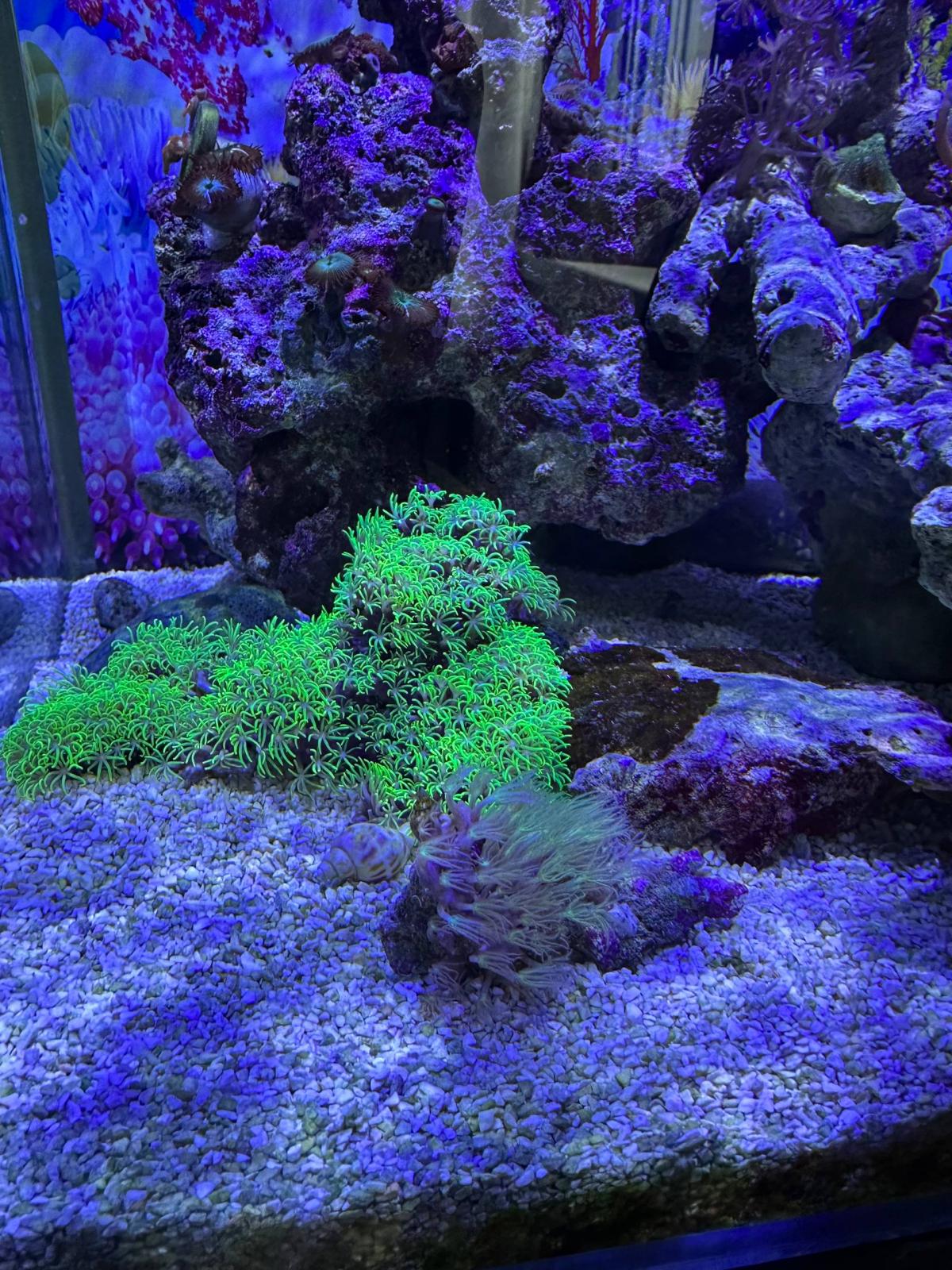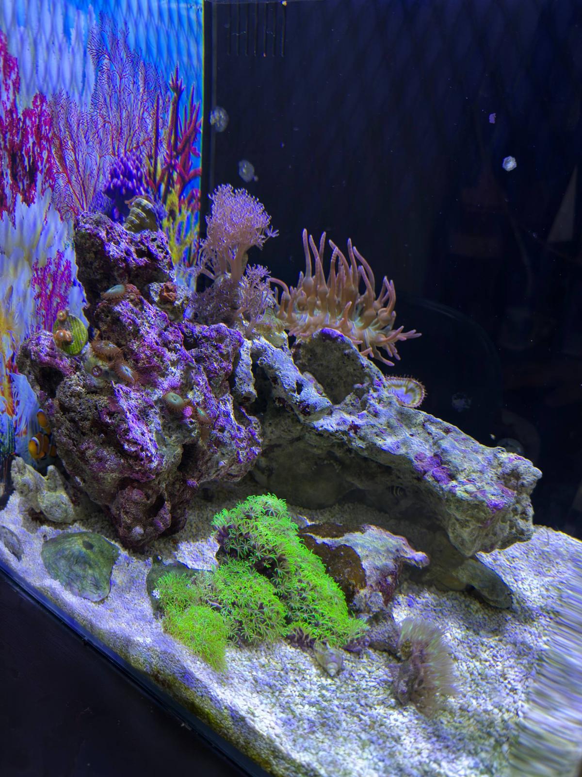 Две помпы потому что не продувают нормально, скопление всякой нехорошей органики. Все помпы стоят на минимум и волнообразно. Передняя JEBAO, SLW-5 7.5 Вт 3000 л / ч. Задняя Athman-RX40. Из-за убогой конструкции нашей гребёнки, нет такого движения воды как надо. У людей с нормальной гребёнкой стоит 1 помпа до 150л.аквариум,и всё нормально хватает.