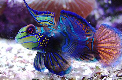Аквариум на 600 литров + самп. По описаниям и опыту других аквариумистов, размер банки позволяет завести 3-4 рыбки, но я читал об интересном поведении именно сложившейся пары мандаринок, поэтому стоит задача приобрести именно самку и самца. В интернете размещены в основном фотографии самцов или рыбок с нераскрытым верхним плавником. Визуально, кроме различия в длине первого луча плавника у самцов в описаниях не нашел.