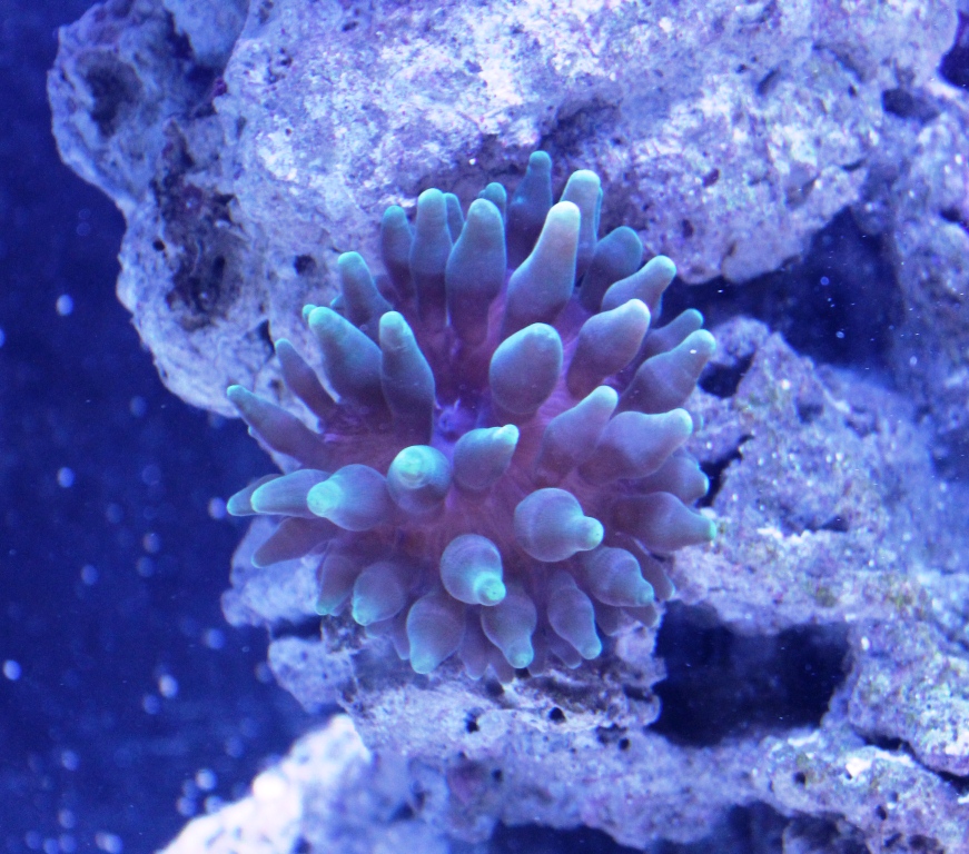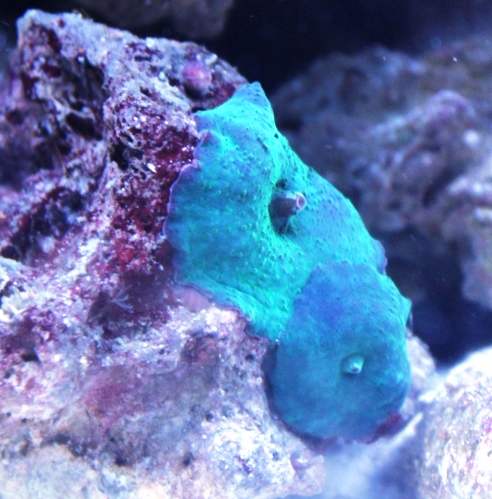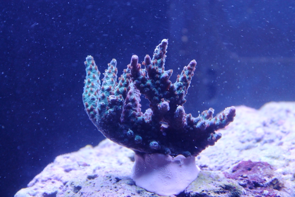 Акропора на самом деле бирюзовая, с сиреневыми кончиками (как это снимать, чтобы было видно - моему мозгу неподвласно):