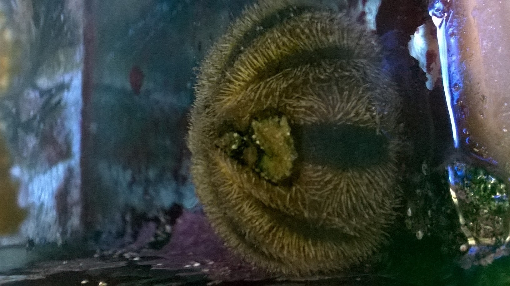 Купленный в апреле 13-го сальмацис-литехинус прожил почти два года и преставился, постепенно теряя свою "пушистость" и слабея (начал падать со стенок). Причина - возможно, недокорм растительной пищей (все-таки мои Киты его обжирали, а морковные печеньки... в общем, морква в море не растет.). Впрочем, истину установить достаточно сложно.
