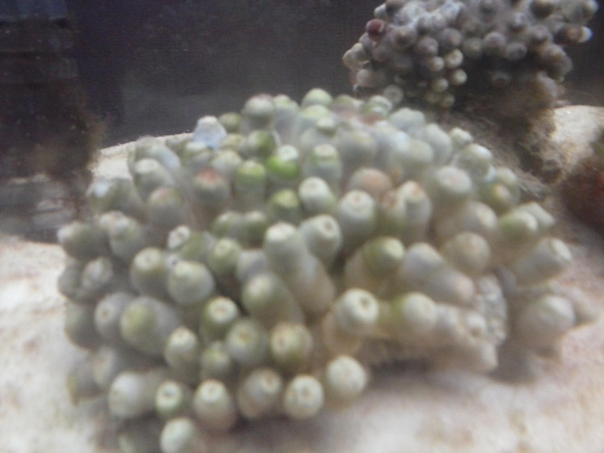На второй нет, но вижу водорослевые обрастания, также из-за отсутствия хорошего течения + ко всему зонтики стрессуют из-за резкой смены параметров, что дает знать наличие сужающей части у полипов. Если есть затененное место, передвиньте колонию туда и оставьте на неделю-пару для акклиматизации, потом уже как колония придет в порядок, ежедневно передвигайте на свет.