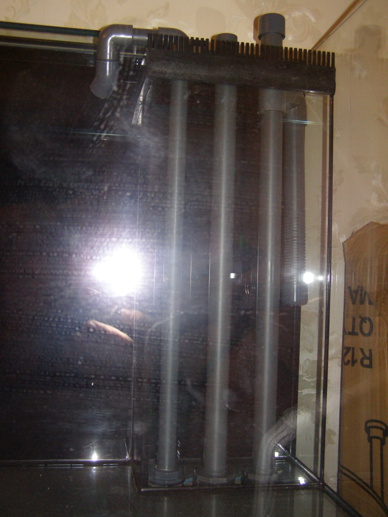1. Банка 135х60х65(h) стекло 10мм оптивайт, ребра, 1 стяжка, шахта 27х13х58 (3 отверстия 2 – под переход 32, 1 – под 25). Понимаю, что без стяжки было бы лучше, но 2,5 года назад), когда клеилась банка финансы были ограничены. Я думаю, что через полтора года я склею другую (в связи с планируемым ремонтом).