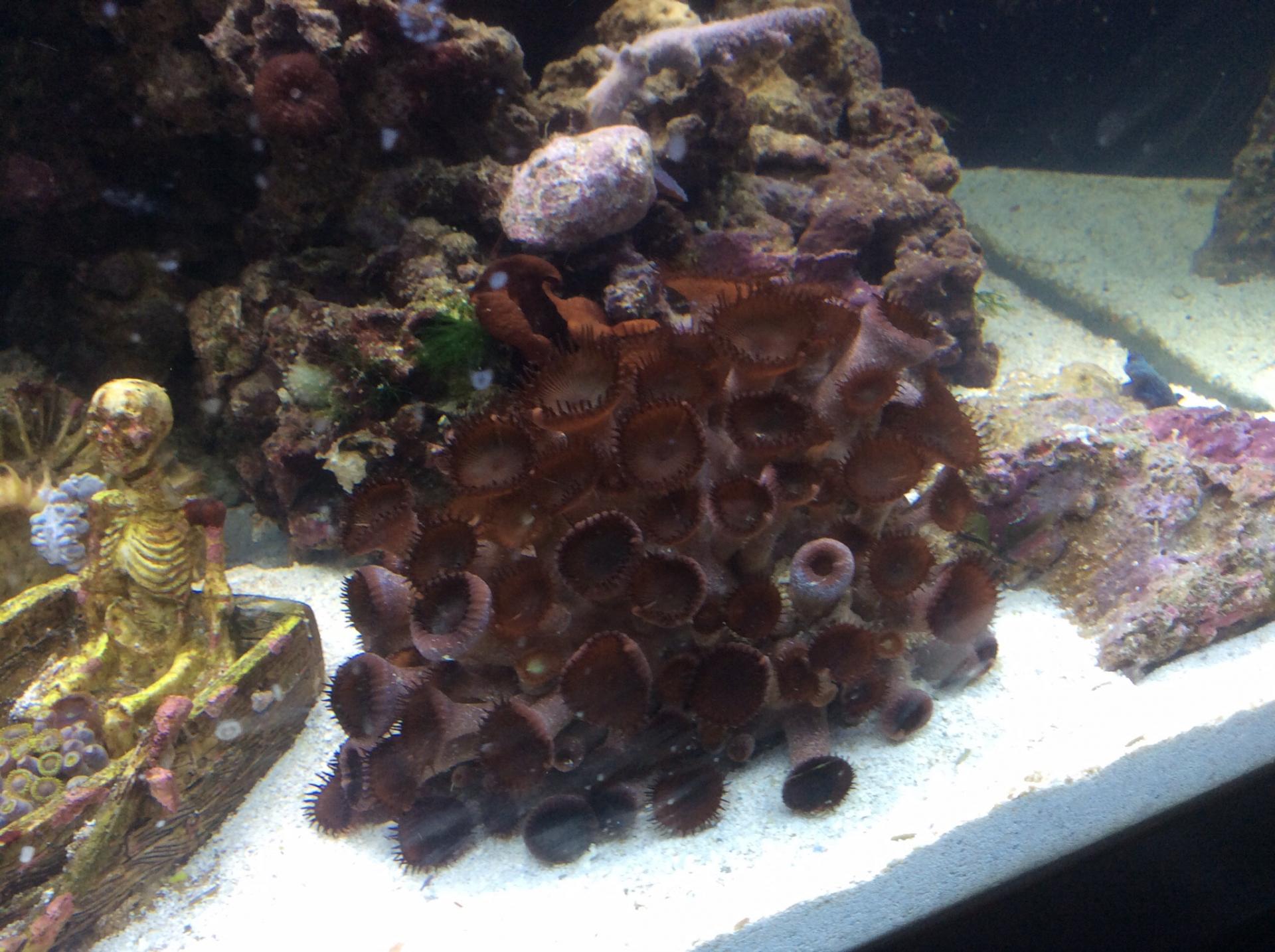 Теперь вопрос: имеются палитои и зонты, но они за все время катаклизмов сменили расцветку- они были с зеленой серединкой, а теперь коричневые, . А зонтики не такие яркие, как припокупке. От чего они побледнели? Может корма не хватает? Или они так стрессуют?