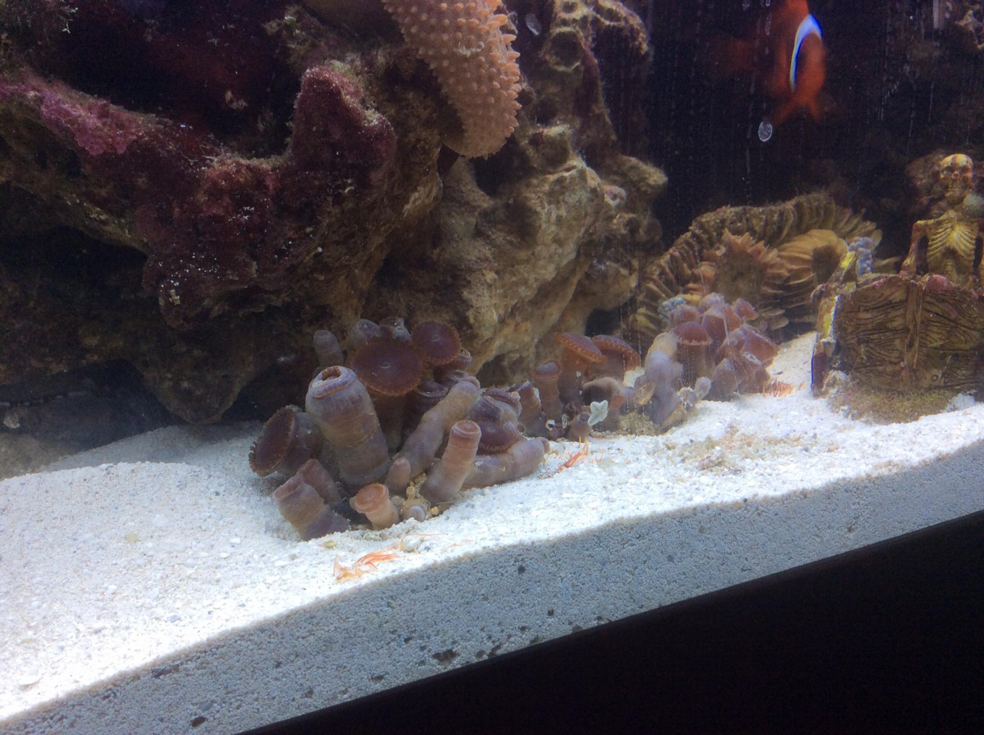 Наблюдаю замечательную картину: вода прозрачнейшая! По банке теперь не летает всякий мусор, камни все чистенькие, кораллы(оставшиеся) пернесли все спокойно. Все червяки перераспределились по песку и закопались, Буду сейчас шевелить сопло на помпе т. к один угол сдуло. Аммиака 0! Ура!