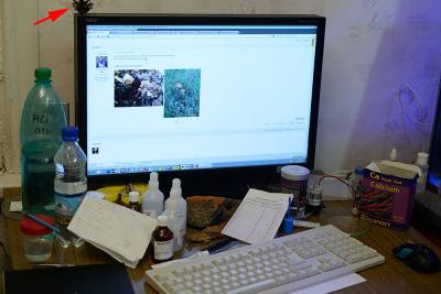 а вот, суровая правда жизни, "как оно есть", бардак на моем столе, на котором стоит монитор, на который приклеена шишка: