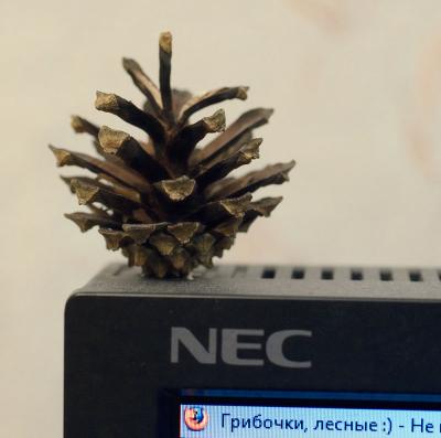 Вот, к примеру, на скорую руку - шишка, которая пустила корни на моем мониторе, вот эта фотография то, что я имею в виду под "сфотографировать красиво"