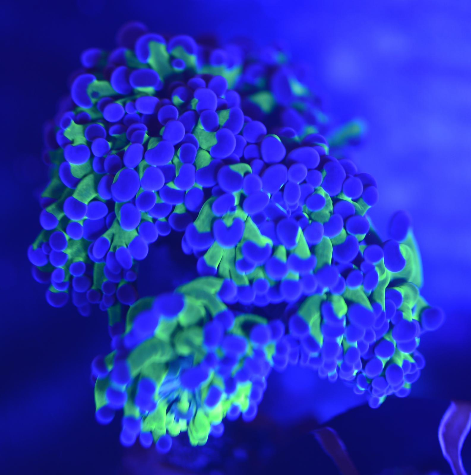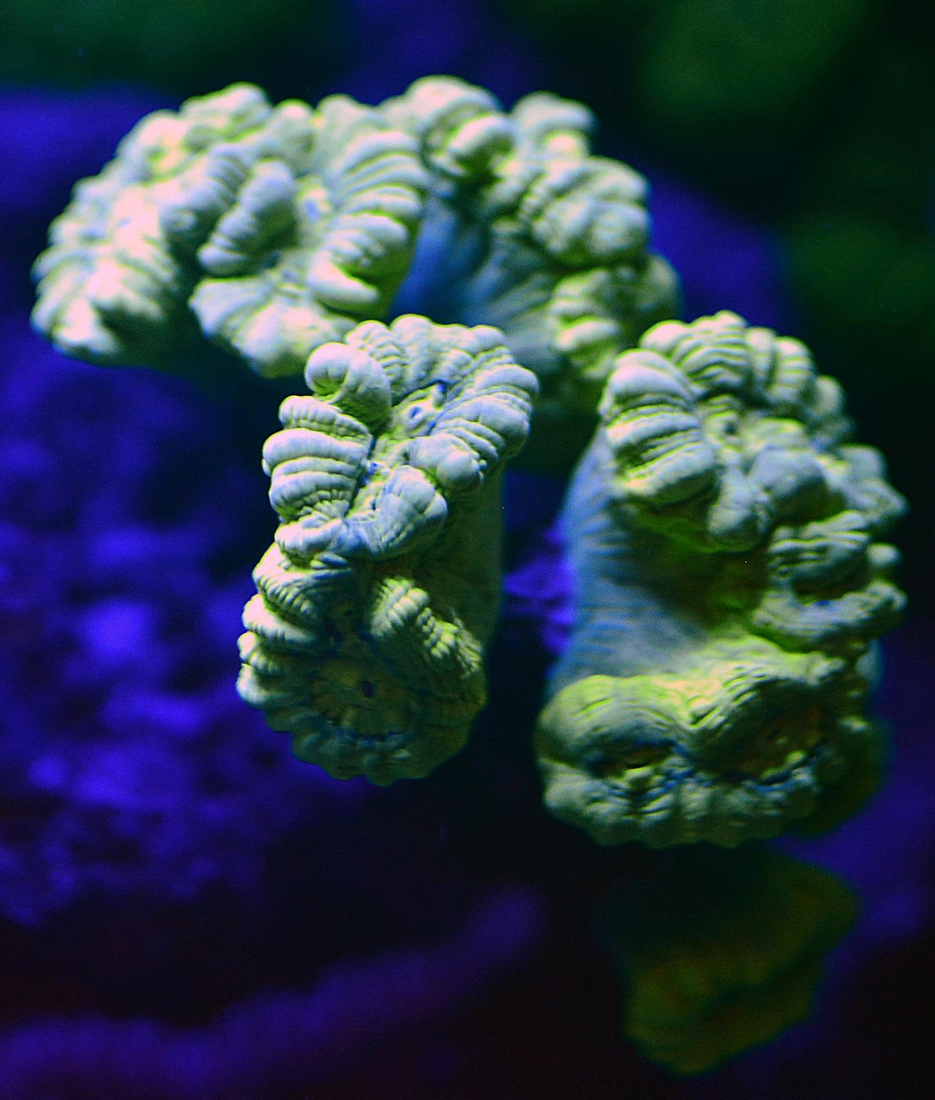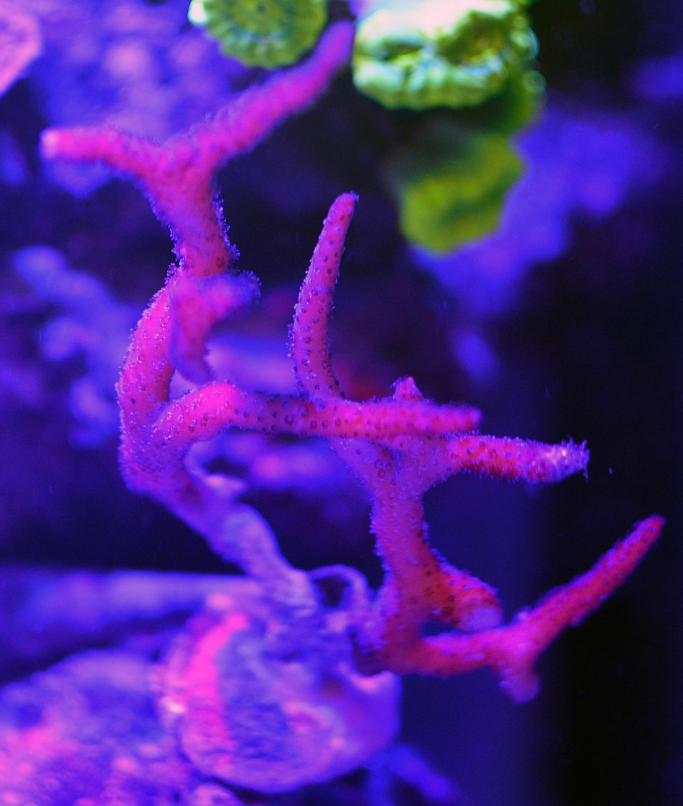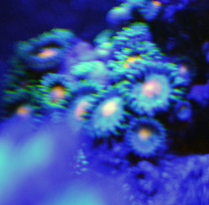 Сегодня решил пофоткать аквариумах при актиниках (до этого все фотки при белом свете). Мучился очень долго, так как фотоаппарат или мои руки не могли передать снимку цвета такими, какими их видят глаза. Пришлось сделать небольшую обработку фотографий в фотошоп, чтобы сделать естественные цвета. И то не все фото получилось выправить. Может кто-нибудь сможет указать мне мои ошибки? Или все дело в фотоаппарате и оптике? Первое фото до обработки, а второе фото после обработки и с правильными цветами уже.