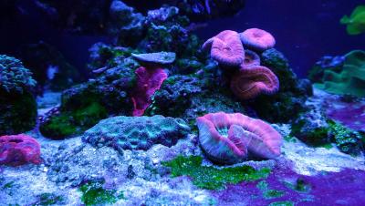 Снова поборов в себе ненависть к этому болоту я все оттуда повыкидывал. Отчистил камни. Помню, перекись лил. Некоторые кораллы, естественно, этого безобразия не пережили. Один только календрум фиолетовый рос как ни в чем не бывало. Какое-то продолжительное время все было не то чтобы хорошо. Но, по крайней мере не становилось хуже. Хотя камни так и не стали выглядеть живее. Кораллы хоть и не дохли пачками, но и не росли толком. Про то, как выглядит живая здоровая коралина я вообще забыл. Только и делал, что счищал скребком отрастающую за пару дней бурую дрянь со стекол. От колоний зонтов мало что осталось. Как оказалось из-за размножившихся в диких количествах астерин.