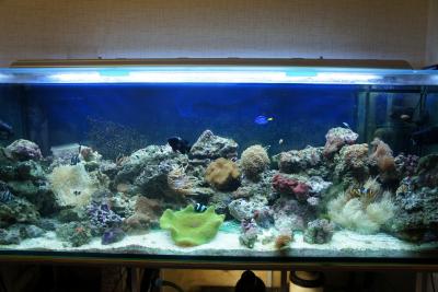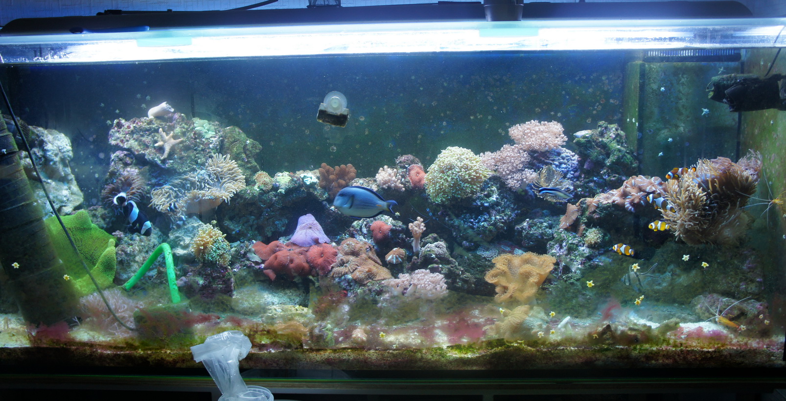 из населения: крупные хелмон, сохал, велифера. по меньше 2*занкл, клоуны и пара апогонов, один остался с собственного разведения.