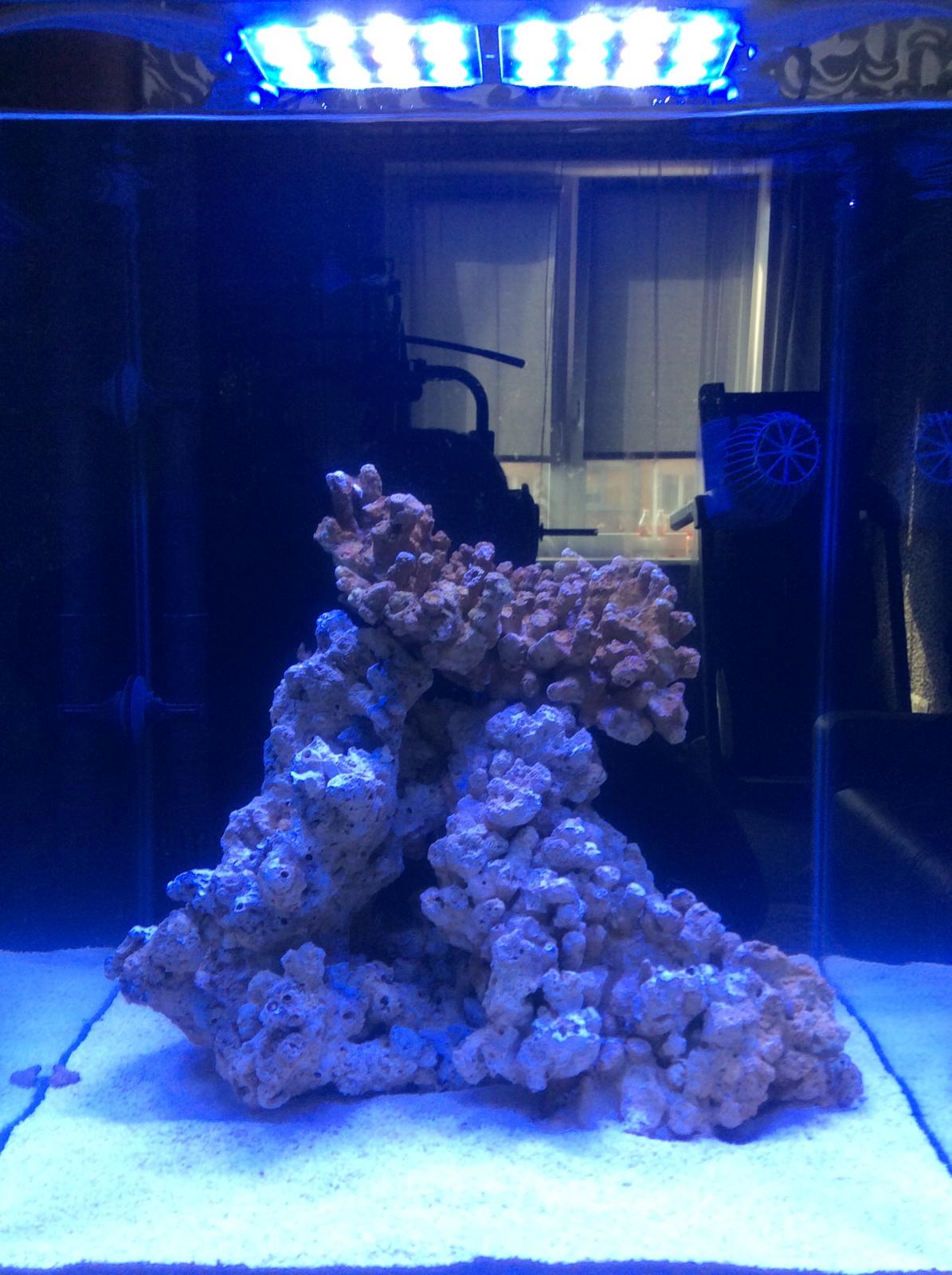 4.08.15 г. Размешал соль прямо в аквариуме, засыпал грунт, уложил камни и включил свет. С этого времени, действую по инструкции Reef Mature Pro Kit, добавляя ежедневно реагенты. Во внешнем фильтре оставил только керамические кольца, уложил коралловую крошку, сверху синтепон и губки. Пока никого не заселяю. Сегодня пошел 3-й день моему морю-полет, по-моему, нормальный! Но, это на мой неопытный взгляд…Буду рад любому совету от коллег, прошедших уже этот этап!