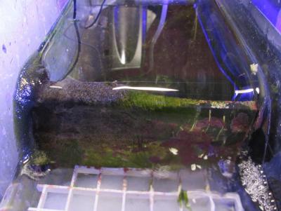 Вот такой шикарный скраббер растет у меня на сливе в возвратный отсек. Все бы ничего, но перепад высот приводит к такому жуткому журчанию, что херби и дюрсо отдыхают. Не знаю, хватит ли моей нервной системы дождаться, когда оно полностью зарастет.