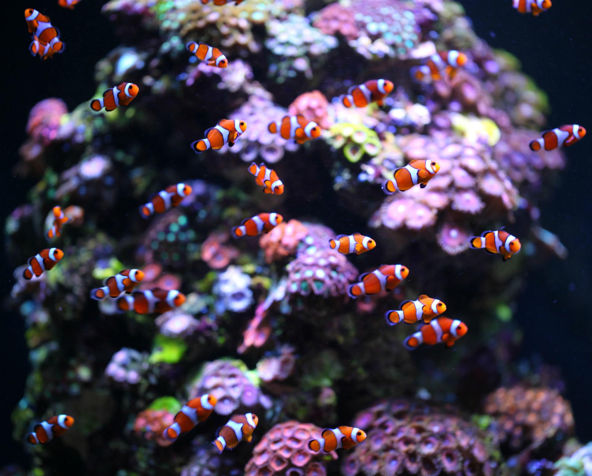 Добрый день.Год-полтора назад по случаю приобрел пару клоунов. Как я понимаю, это Amphiprion Ocellaris. Продавец сказал, что они искуственно выведенные и что в актинию не сядут.Вот старенькая фотка неплохого качества.А вот прямо сейчас целкнул на телефон. Трутся они у перелива. И часто вертикально. Вроде сильно их никто не обижает, но тем не менее нашли себе место на задней стенке аквариума.И вот вопрос: Можно ли им все же предложить актинию? Сядут ли? И какую актинию по названию?