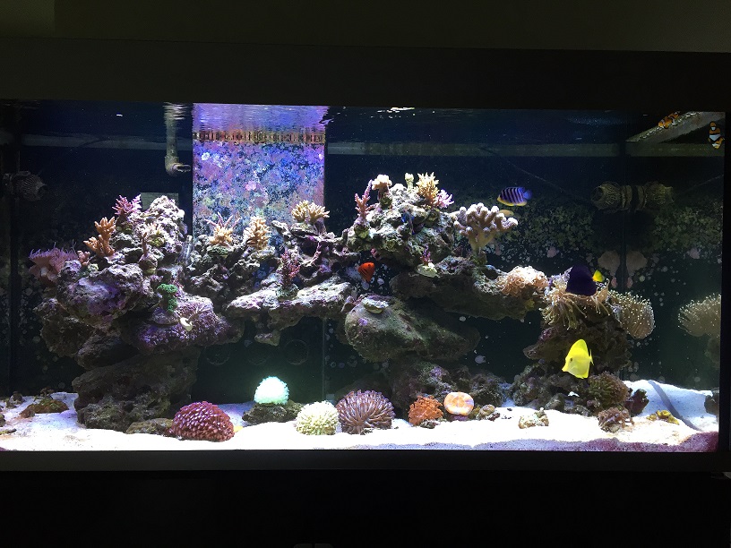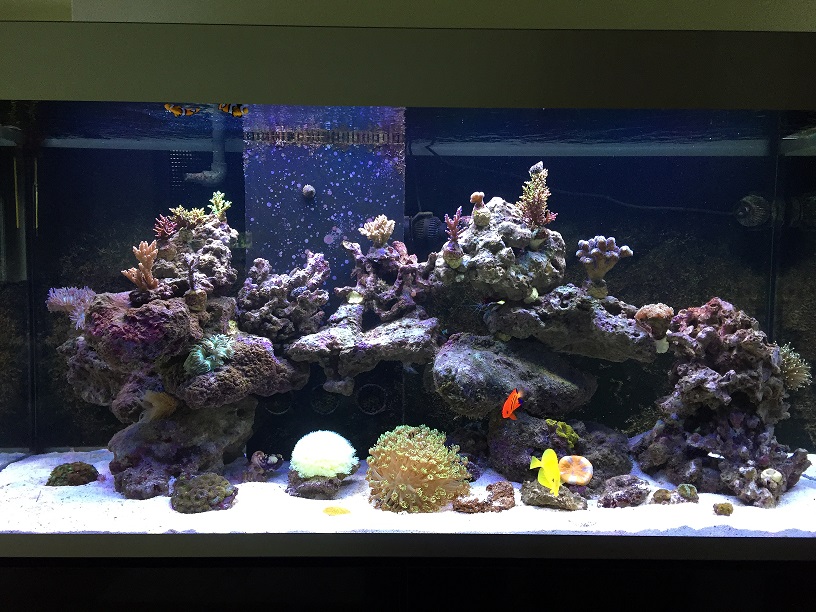 Дозировку пока делаю руками, подмены воды раз в месяц 10%. Запуск был с жк, живым песком и водой с системы магазина. Все идет с мая этого года. К сегодняшнему дню уже есть довольно приличное количество рыбы и кораллов. Список живности и фото постараюсь сегодня поставить.
