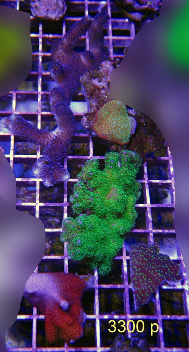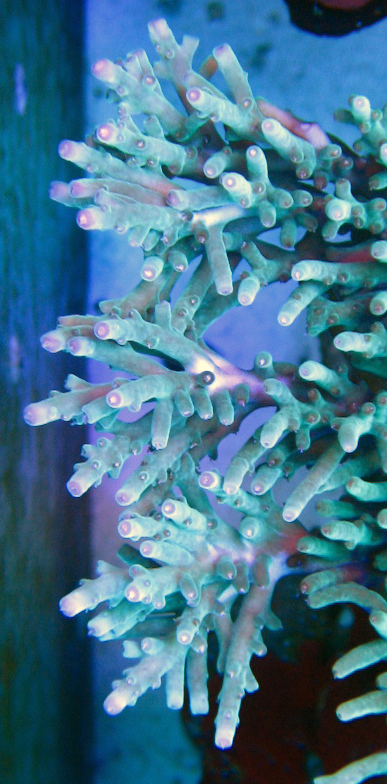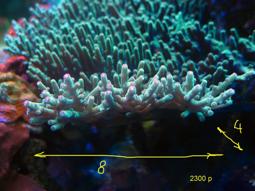 3. Монтипора дигитата с розовыми концами. У меня растет как инкрустирующая, с небольшими ветками.