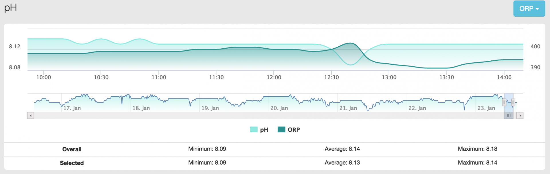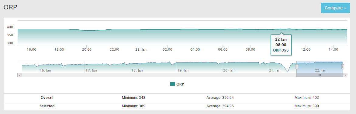 ORP тоже весьма стабилен - просадка примерно на 20 при кормлении.