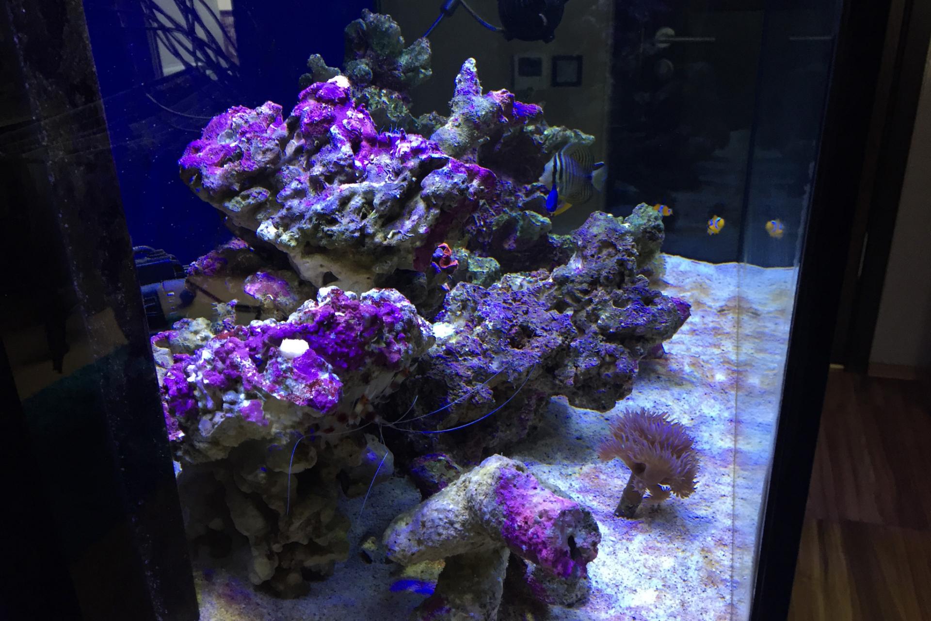 Кораллы пока что на песке держу, так как актиния бывает шляется по камням... сейчас вроде нашла себе место после перестановок.
