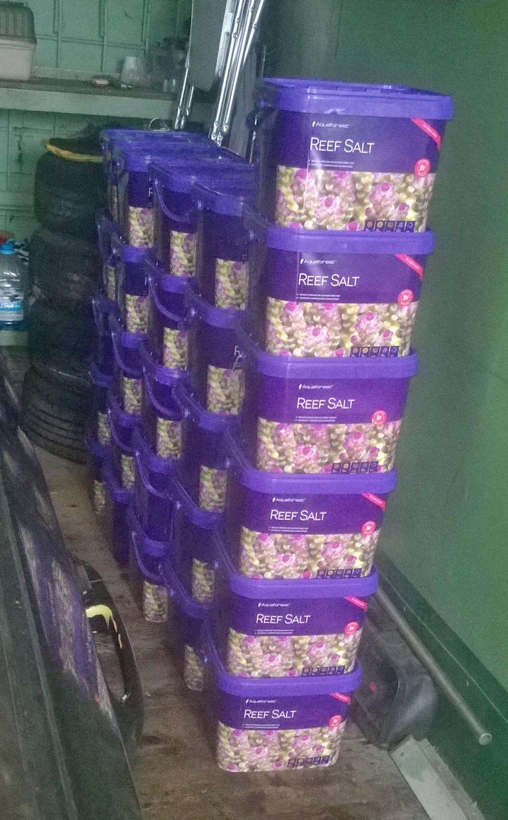 8 ведер соли риф, 2 ведра 22 кг обычная.