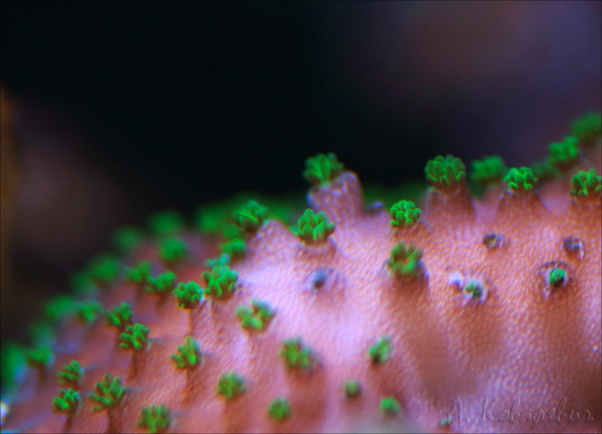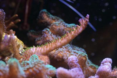 Прикупил я позавчера новый коральчик - акропору с зелёными полипами.