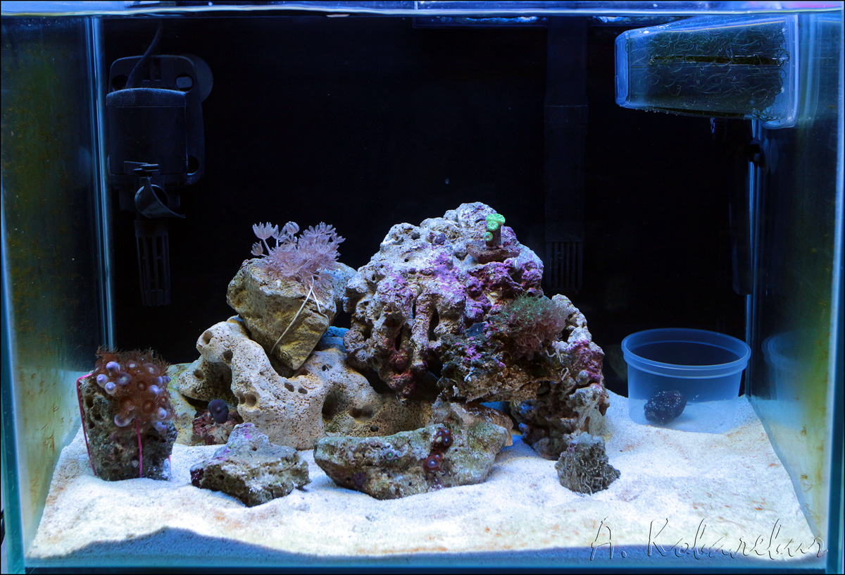 Так то он прикольный и камни чистит постоянно, но скидывает всё на своём пути. Это ещё ладно когда в песок, а если на политою или родактис, то могу и не досчитаться некоторых кораллов.