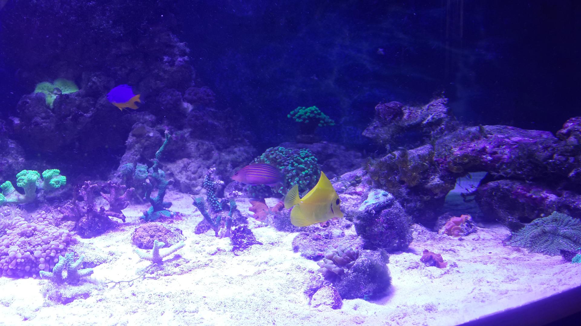 Хозяин этого аквариума докупить камни и сложит красивую горкуПо оформлению ваш аквариум похож на иагазинный аквариум с кораллами, но никак не на риф..б