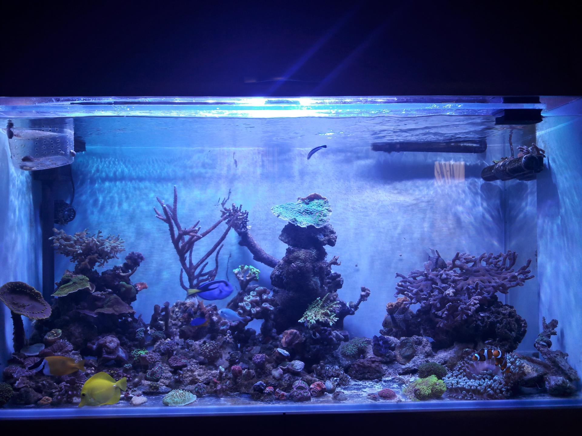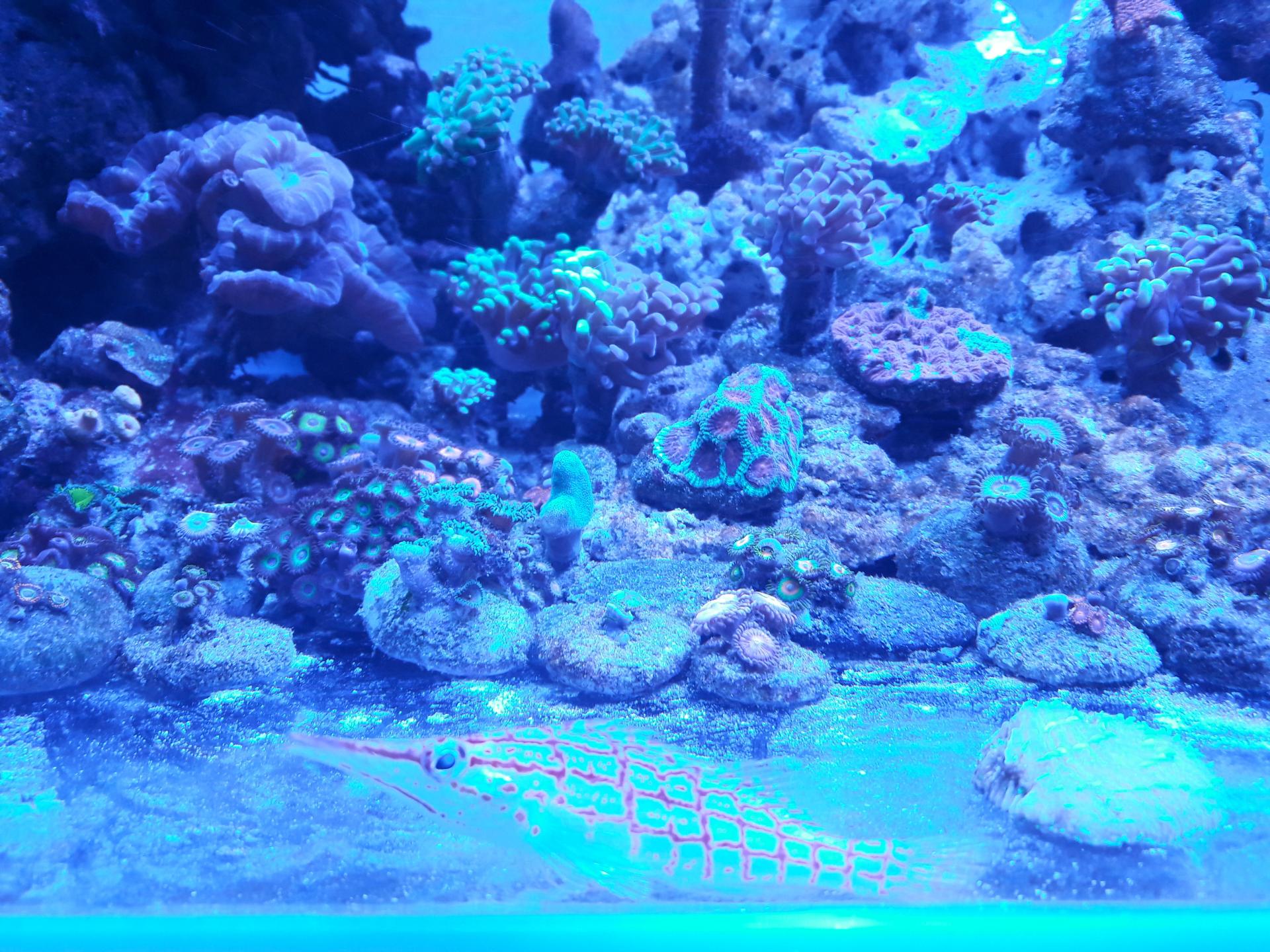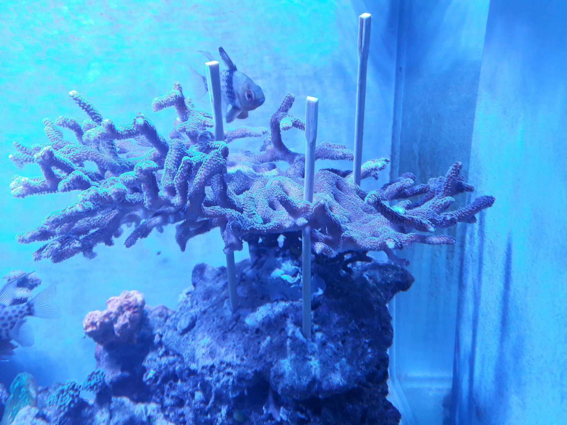 Не понятно зачем клеить большой коралл , обычно их наоборот отламывают , чтоб и другим место для роста было.Тем более он нижним будет создавать большую тень .