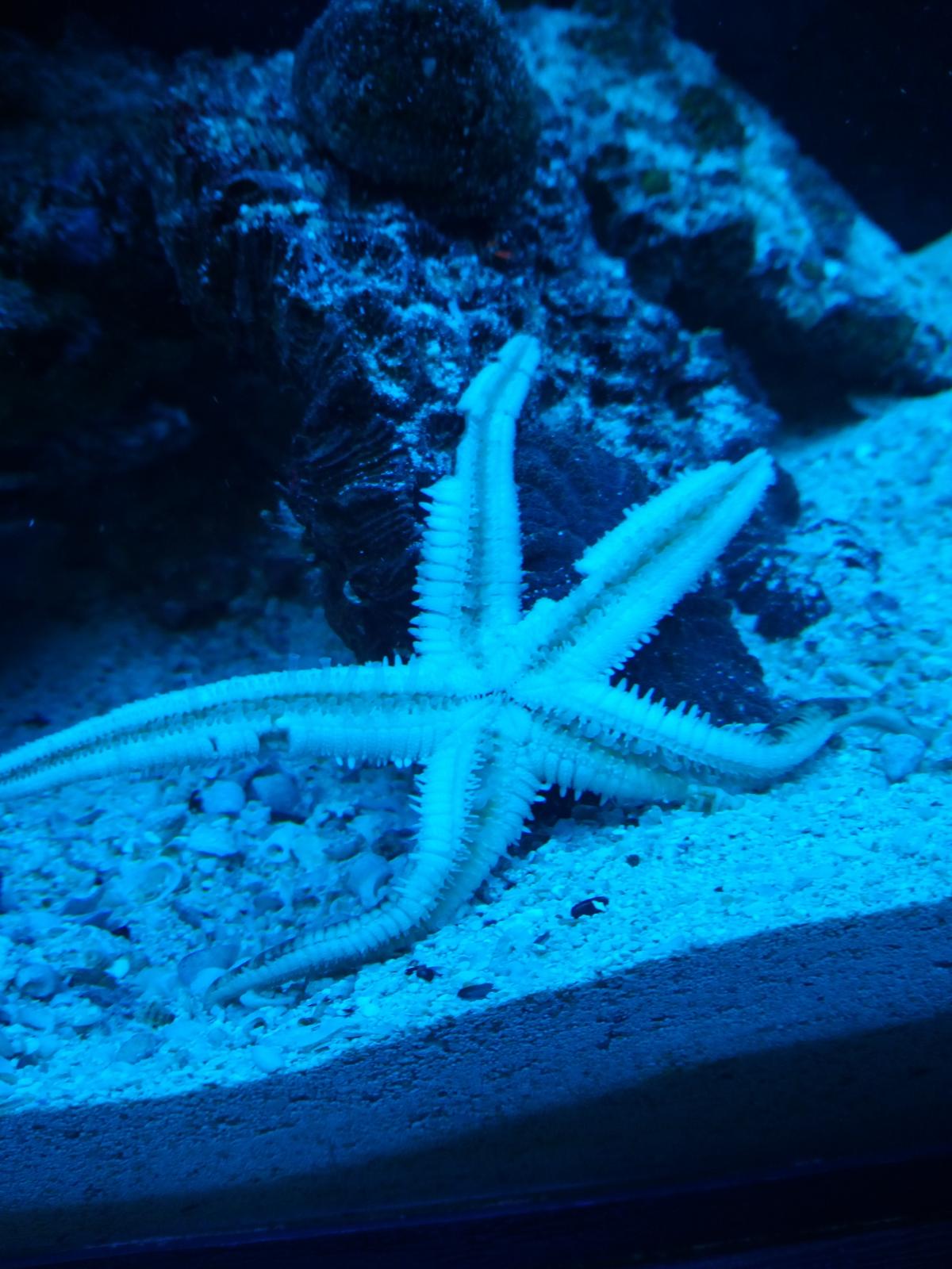Песчаная звезда см 10 -12 живёт в банке около года. Стала чаще выползать на стёкла ( от голода?) , за последних две недели стала терять сегменты на щупальцах ( если поначалу диоген любил её пощиповать не нанося особо урона, то очень давно ему эта развлекуха надоела). Из банки за этот год отданы рак-щелкун и крупный палоло - целиком не порваный (не уверена, мог ли оставить детей в банке?)