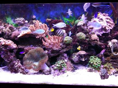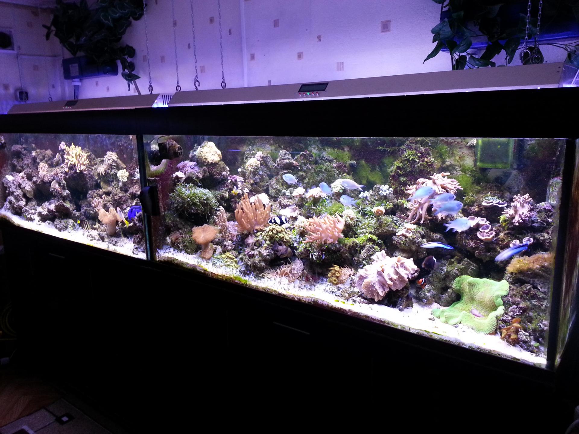 система смешанная, держу то что только живет, два аквариума по 500 литров и самп 240 литров оба аквариума на одном сампе. свет самодельные трех канальные LED светильники (закат, рассвет, луна, плавный нарастающий розжиг) свет 12 часов общего режима, в общей сложности чистой воды 1000л подмены делаю раз в 2-3 недели, из добавок RED SEA ABC+ и периодически кальквастер, фото не очень фотаю на телефон всегда