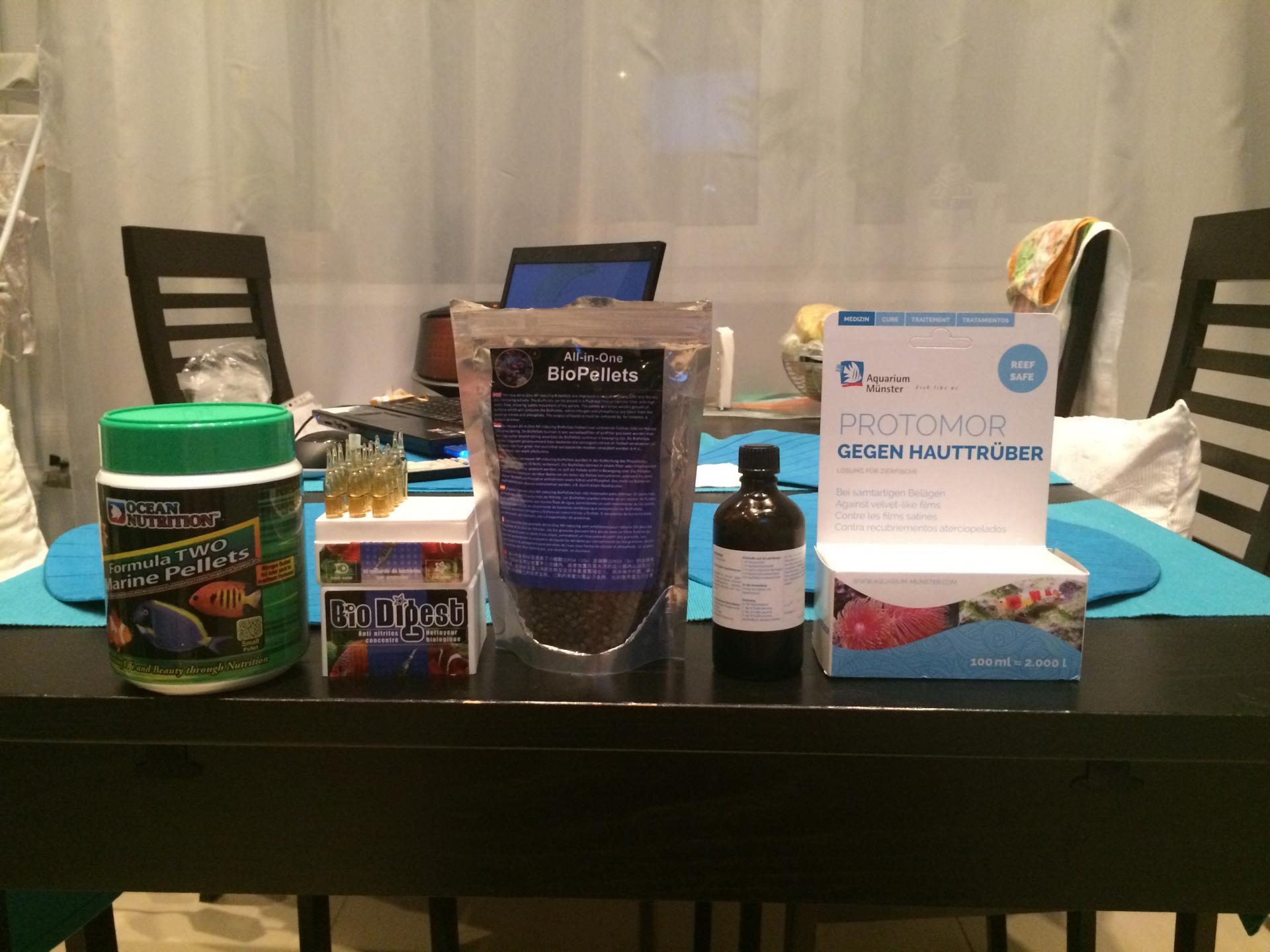 4) Protomor от Аквариум Мюнстр Reef Safe покупал на акваристике, два флакона, оказалось слишком много, один продаю 100мл (на 2000 литров), срок годности до февраля 2018 года, хранится в холодильнике. Позиционируется, как средство от крипта. Лично пробовал, курс недельный прокапал, сказать , что мгновенный эффект не могу, но за неделю крипт у рыбс сошел, правда не знаю насколько в этом заслуга лекарства. Безопасен для рифа - 2000,00