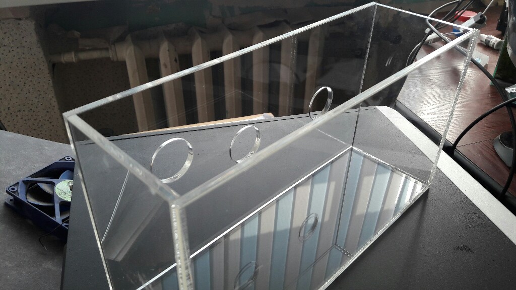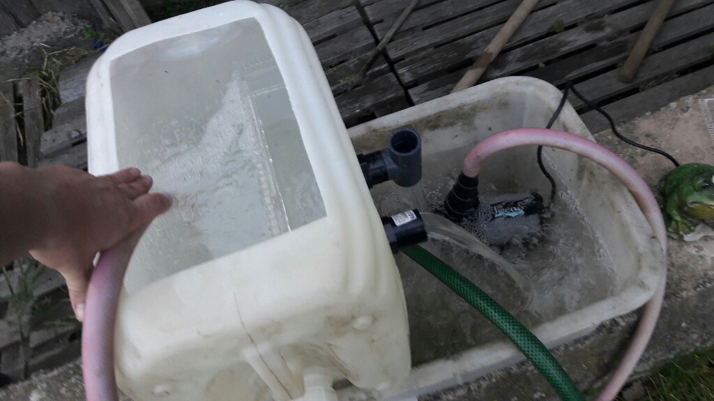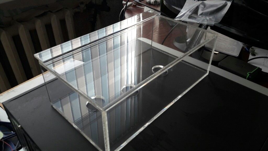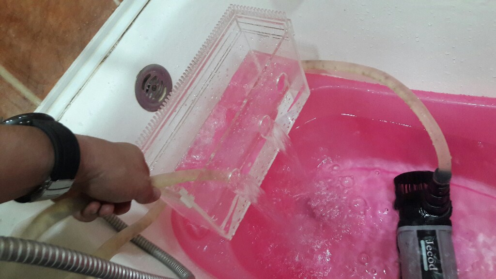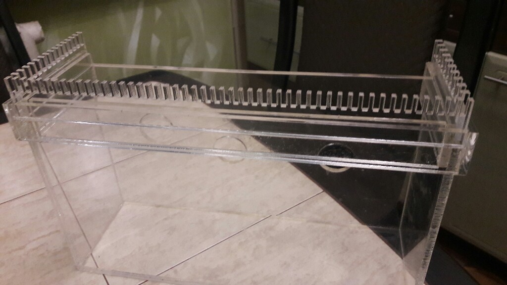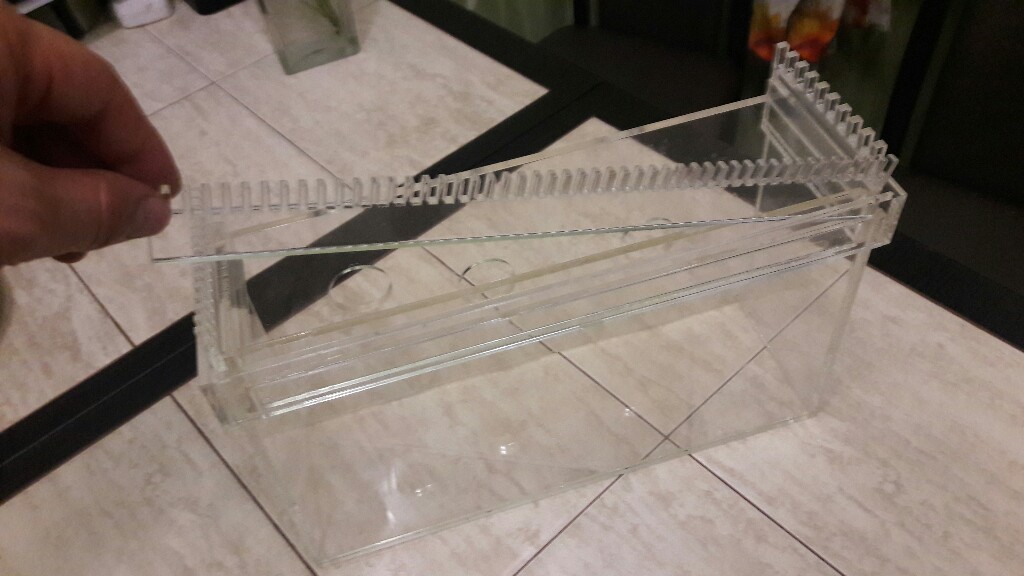 Зубья должны быть под водой на половину, шахта ещё чуть меньше.JAK Вы правы), заменил шланг на более толстый мощность возросла. Соорудил такую конструкцию для испытания кармана.Гребенка с мелким зубом не прошла, крупный шаг прошел испытания.На полной мощности зуья торчат гдето 2 мм от воды.Трубки слива оказались полностью под водой,это нормально?