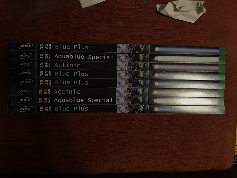Свет ATI 8/24 Dimm ( 4 АТИ блю плюс, 2 АТИ корал плюс, 1 АТИ актиник, 1 аркадия Led Actinik )