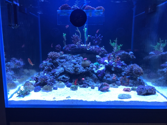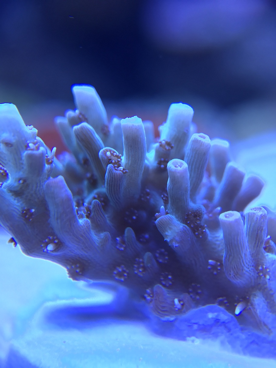 Василий, привет! ИМХО экфилию лучше за риф убрать. Разрастется быстро и прикольный навес с СПС закроет.