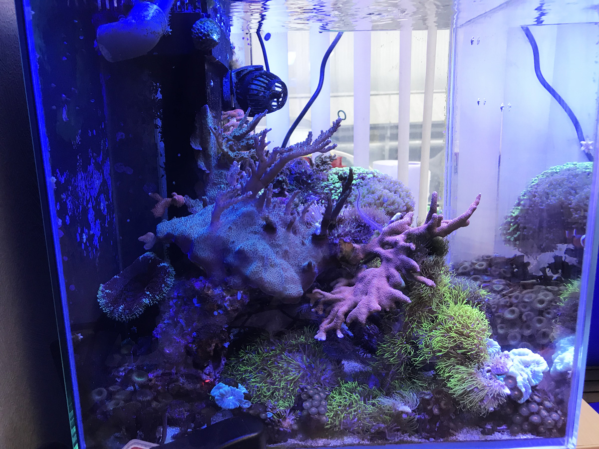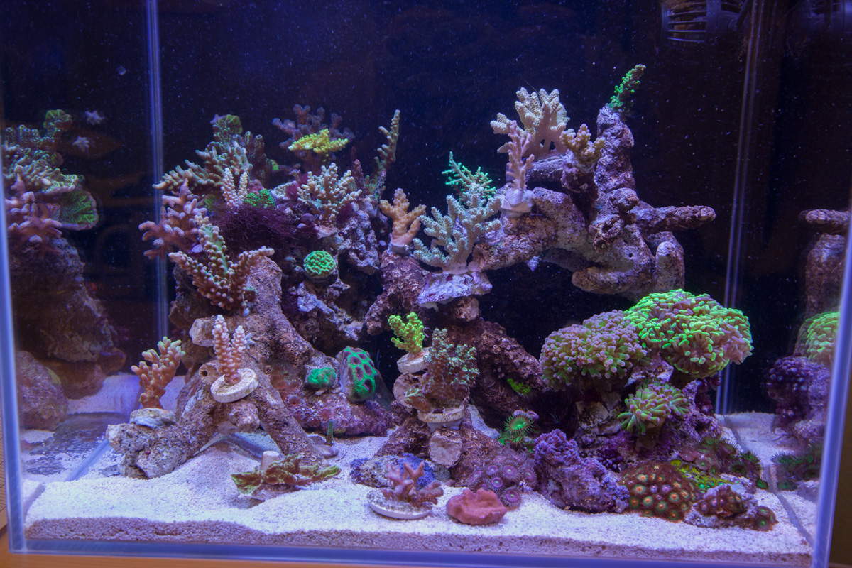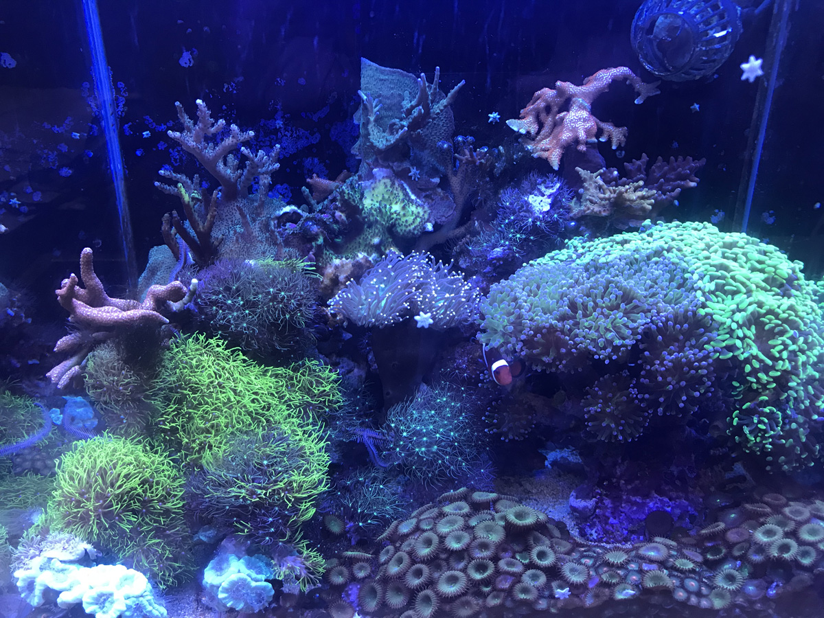 1. Из-за шахты перелива в банке сзади сбоку образуется отсек, который осветить нормально при помощи линейно расположенных лед сборок не получается. Если Вы там тоже располагаете кораллы, (а странно, если нет), то приходится там ставить дополнительный свет. Меня, например, пока спас 3W синий Zetlight, который я когда-то использовал для луны и досветки. Но его мало, буду что-то думать.