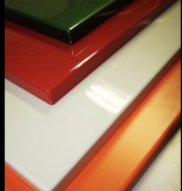 Красят в основной массе на роботе, тк заустанешь в ручную махать. И разные есть покрытия акрил или полеуретан. Но в любом случае кромка там клееная идёт.Вообще нормальный фасад и вся обшивка тумбы в идеале должна быть из полностью окрашенных панелей. Красят краскопультом, лак по итогу. Цвет любой, хоть глянец,, хоть матовые, хоть с металликом. Нормальная мебельнаая фирма сделает такие фасаду с допуском 0.1 мм. Главное правильно самому спроектировать и собрать тумбу.