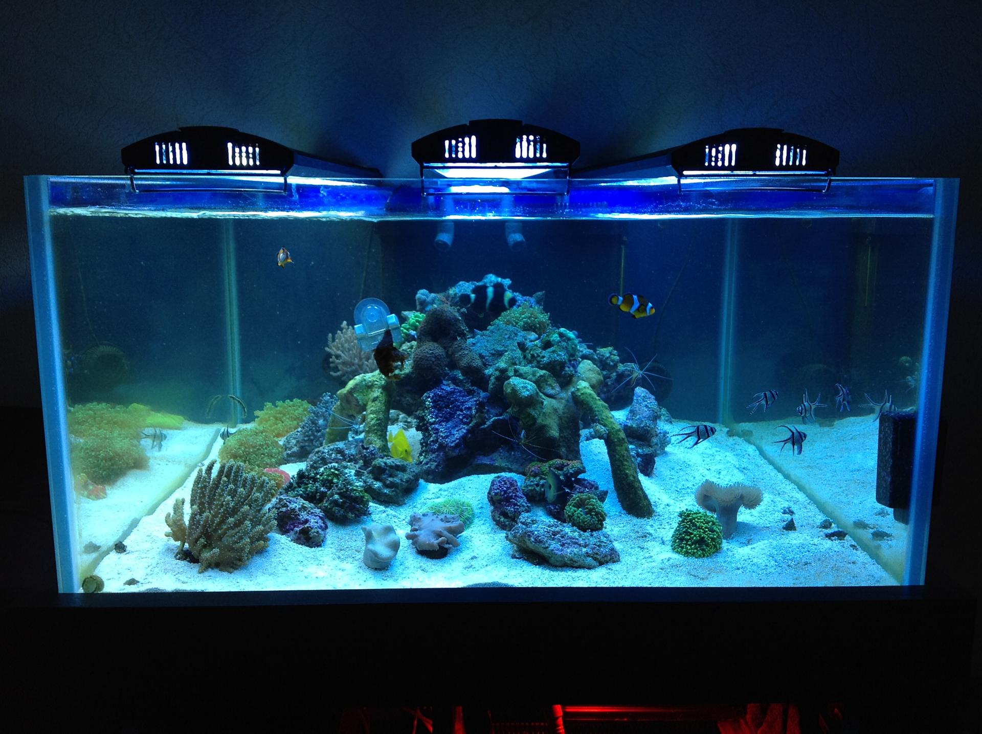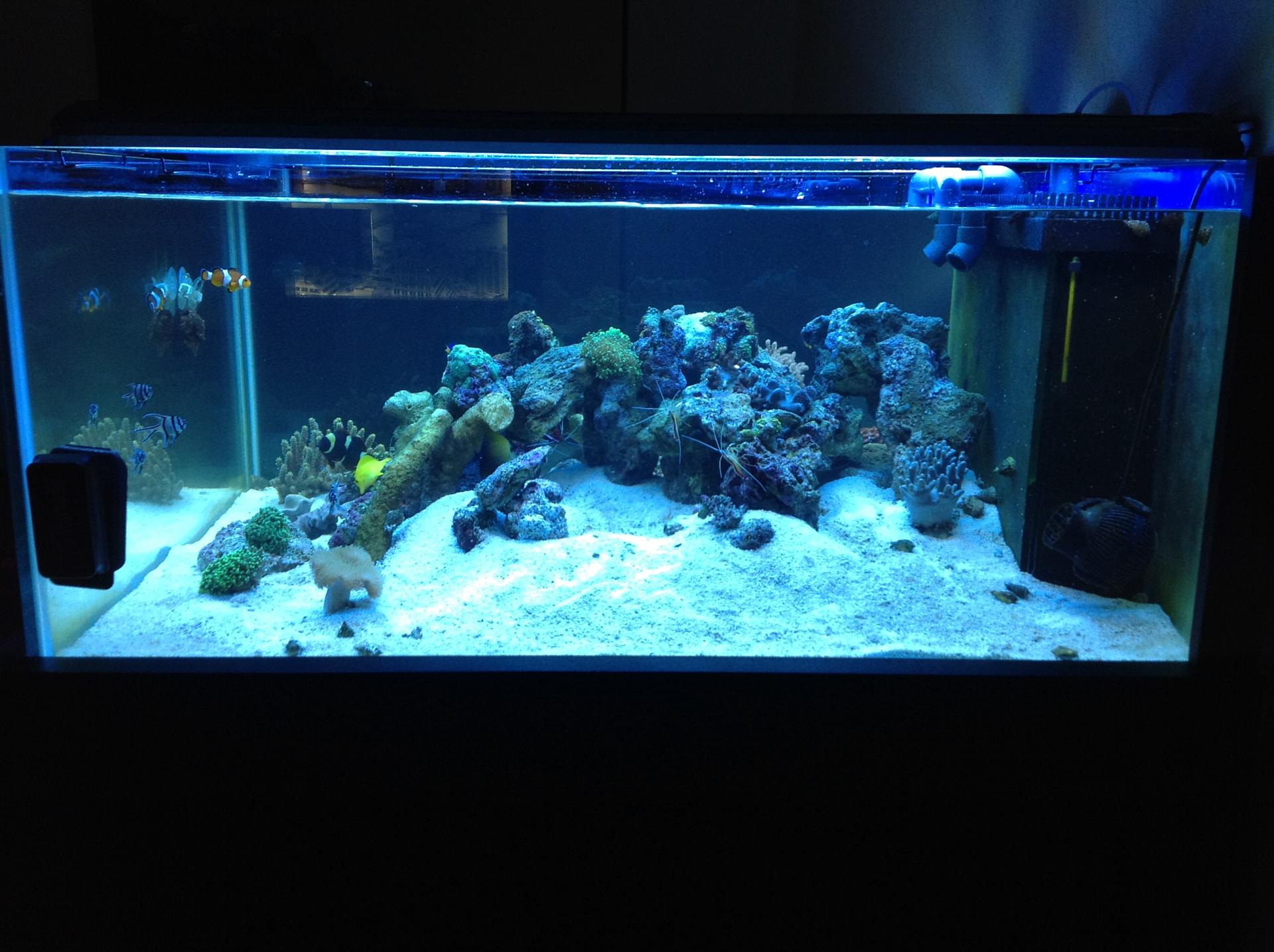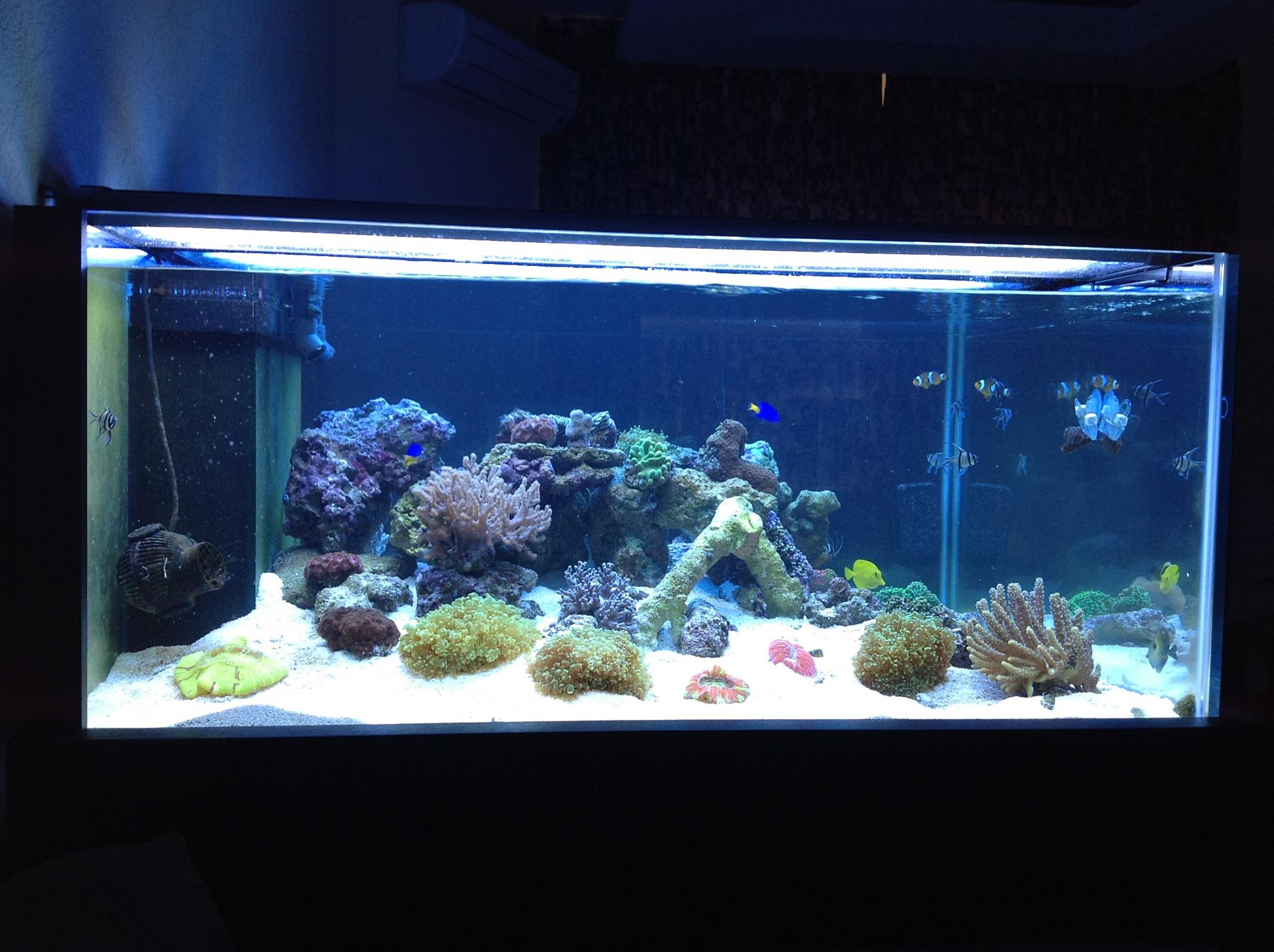 Я стал счастливым обладателем банки 105х120х55см. на 600 литров(примерно) + самп на 150… На сегодняшний день банка находится в процессе созревания, но у меня соответственно постоянно чешутся руки что нибудь сделать, переделать или «модернизировать». Из рыбного населения обживаются: Клоуны, Апагоны, Зебрасомы, Бычки инженеры, Хризиптерки… Коралы пока находятся в некоторой "ротации", так как зоантусы почему то покидают меня по непонятной мне причине( ... Параметры воды по тестам в норме, но думаю что со временем все наладиться….
