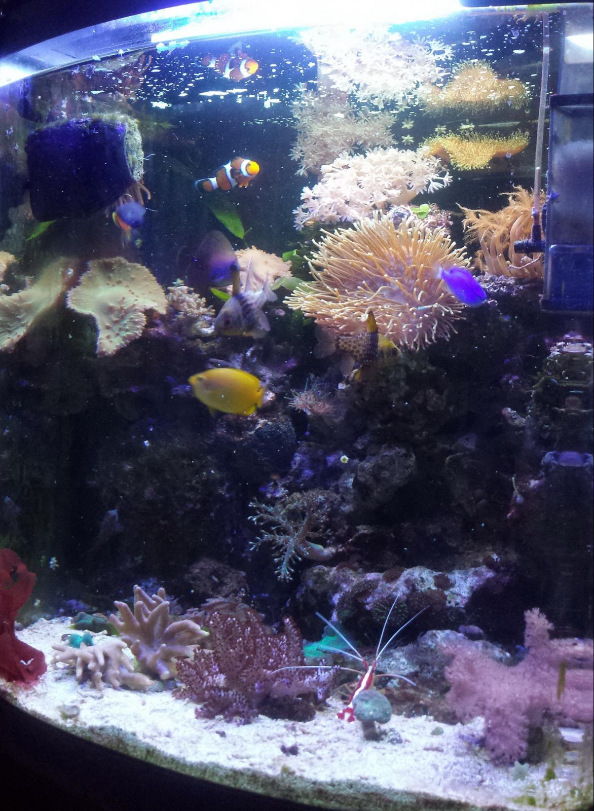Основной животный состав живёт с осени 2016г. На днях только добавилась совсем маленькая зебрасома скопас.