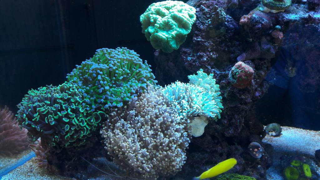 Те спсы, что привез пару месяцев назад, думал что в ступоре. Сегодня сравнивал их нынешнее состояние со старыми фотографиями. Почти все фраги усилили окраску и увеличились в размере. Розовая милиопора отростила ветку около 2 см за 2 месяца.