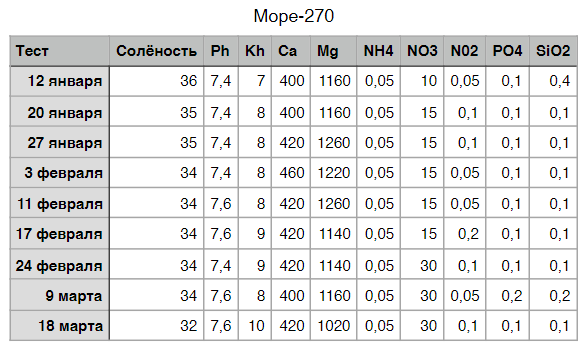 17 марта: Вечером клоуны очень тяжело дышали и держались у дна, а небольшая зебрасома скопас умерла. Никаких признаков болезни ранее не наблюдалось ни у клоунов, ни у зебрасомы.