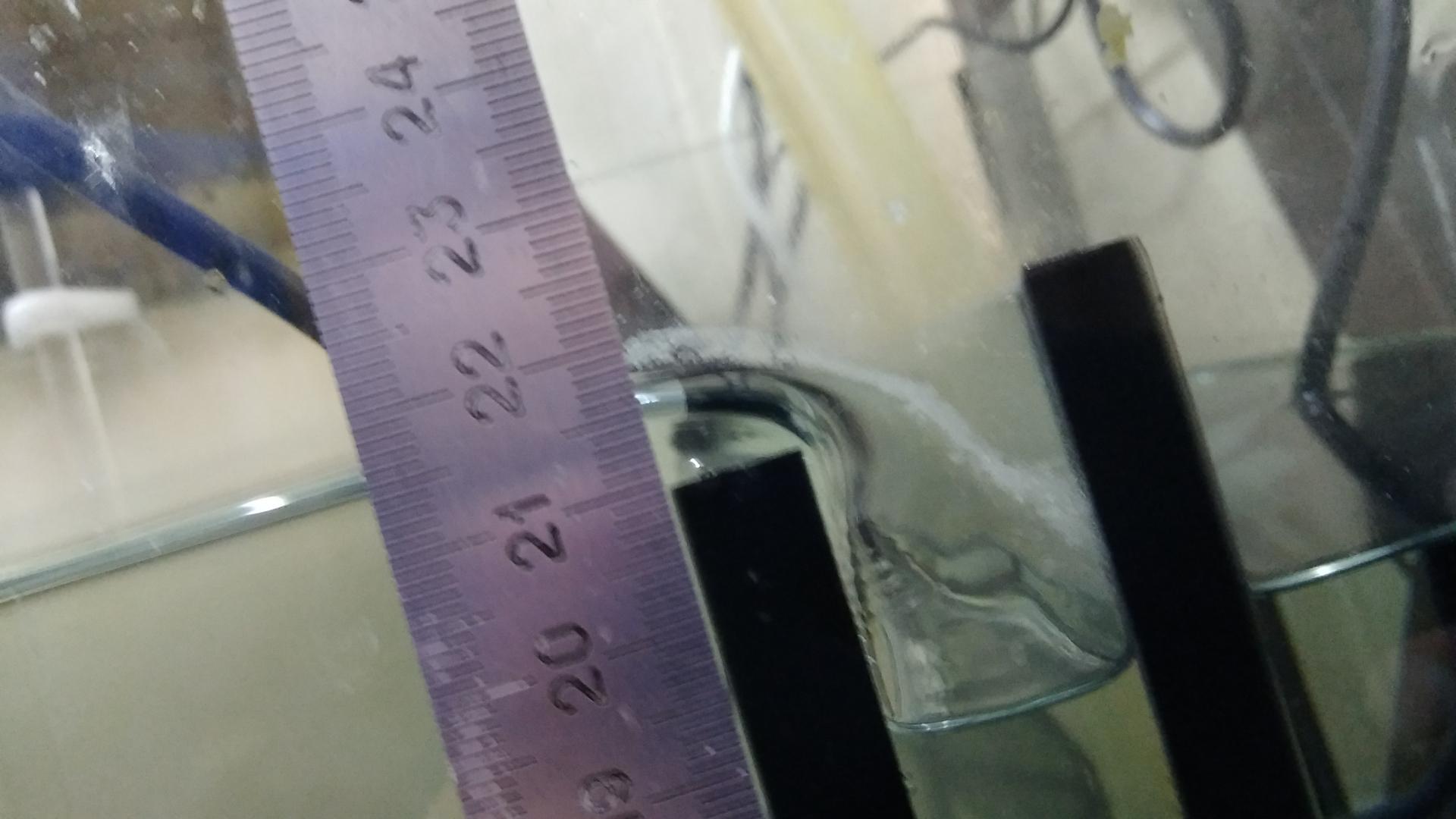 Высота воды через перегородку в сампе 5-6мм, сама перегородка длиной 38см.