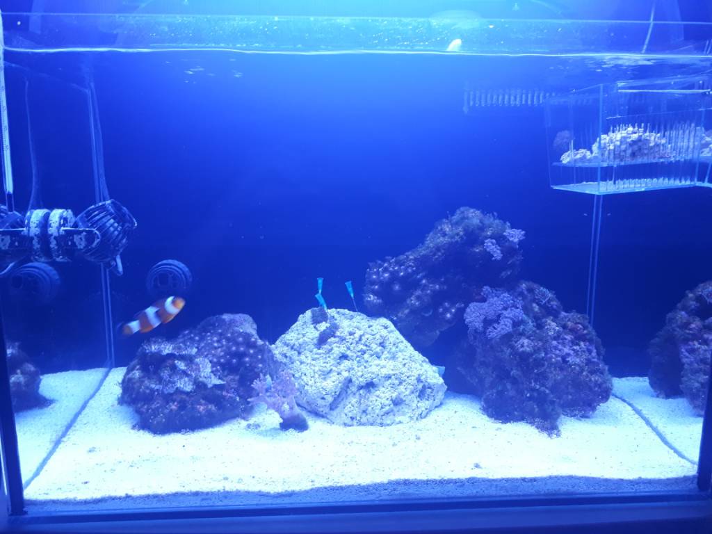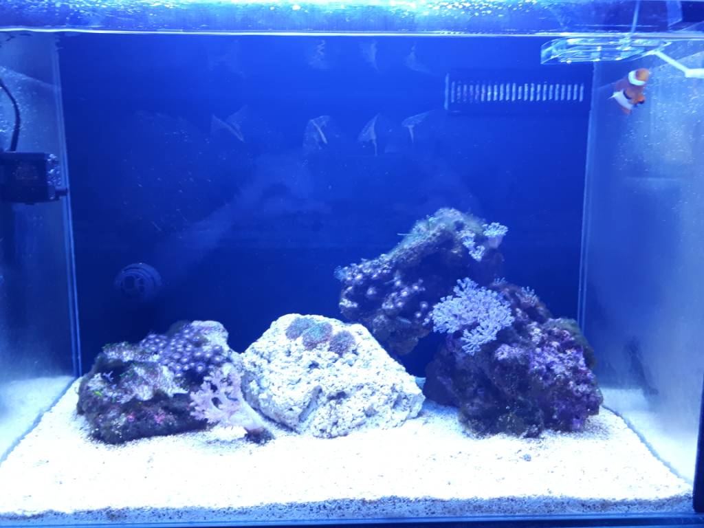 Спасибо за совет с родактисами! Помогло, но помпу течения пока что пришлось снять, сильновато дует, родактисы нормально не приростут никак к большому камню. В остальном переезд прошел ровно. Пока скудно по кораллам, но все впереди [ 6] Фото делал перед чисткой боковых и задних стекол.