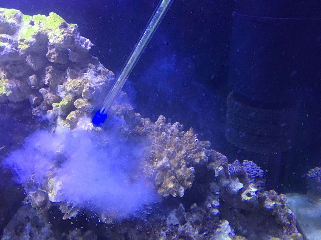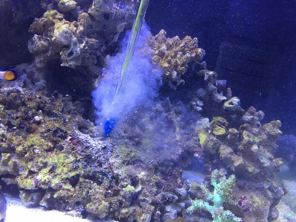 Промыть под помпой в солёной воде или в аквариуме организовать хорошее течений на них, вся взвесь отфильтруется.