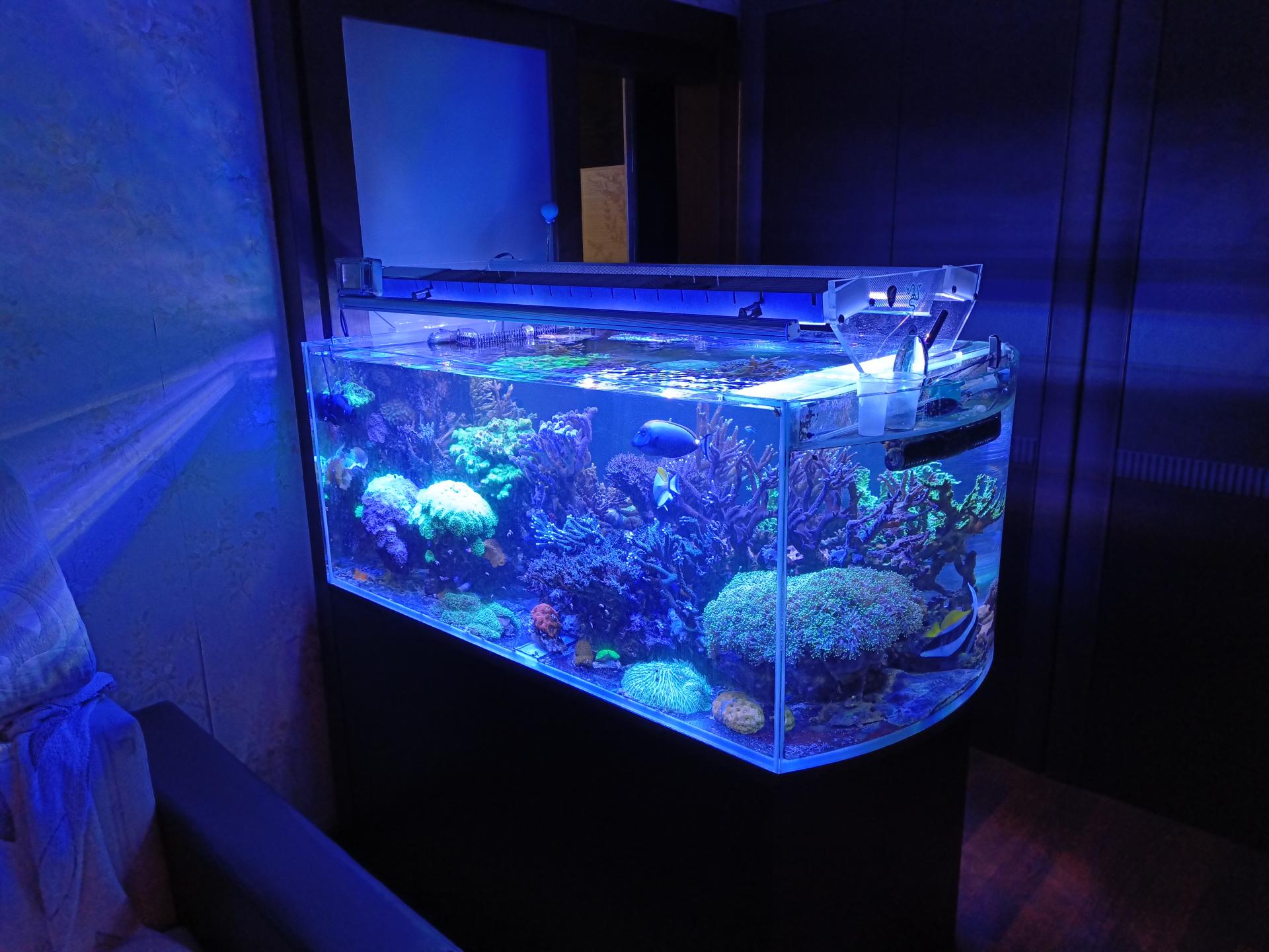 Сейчас банка в хорошем состоянии, почти все коральчики с точками роста,фильки прут.