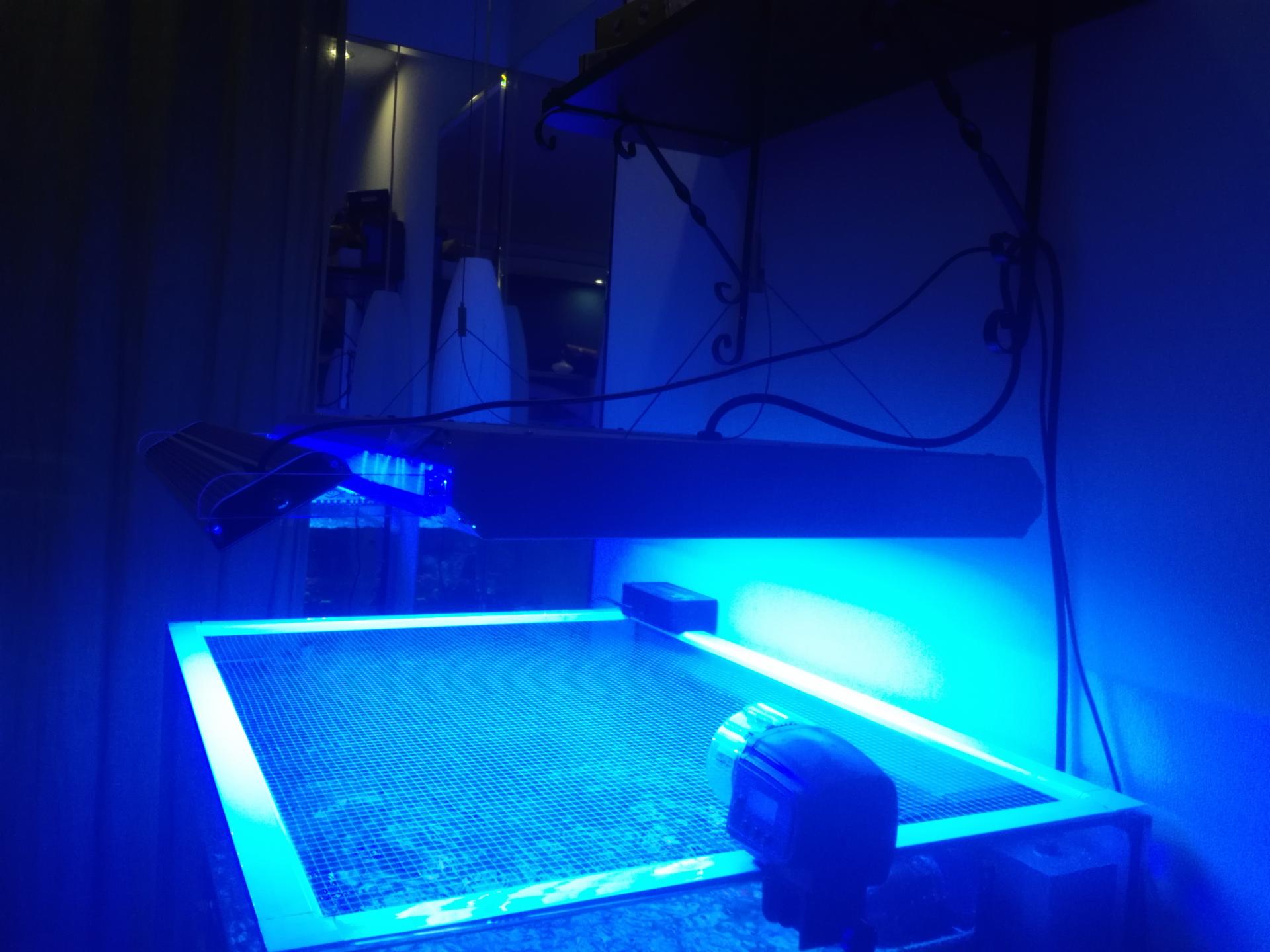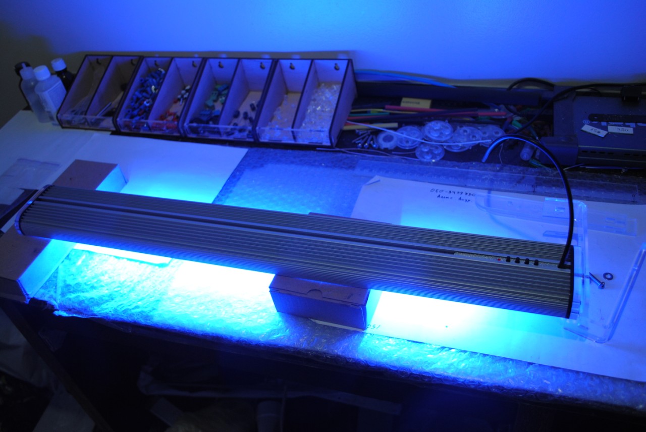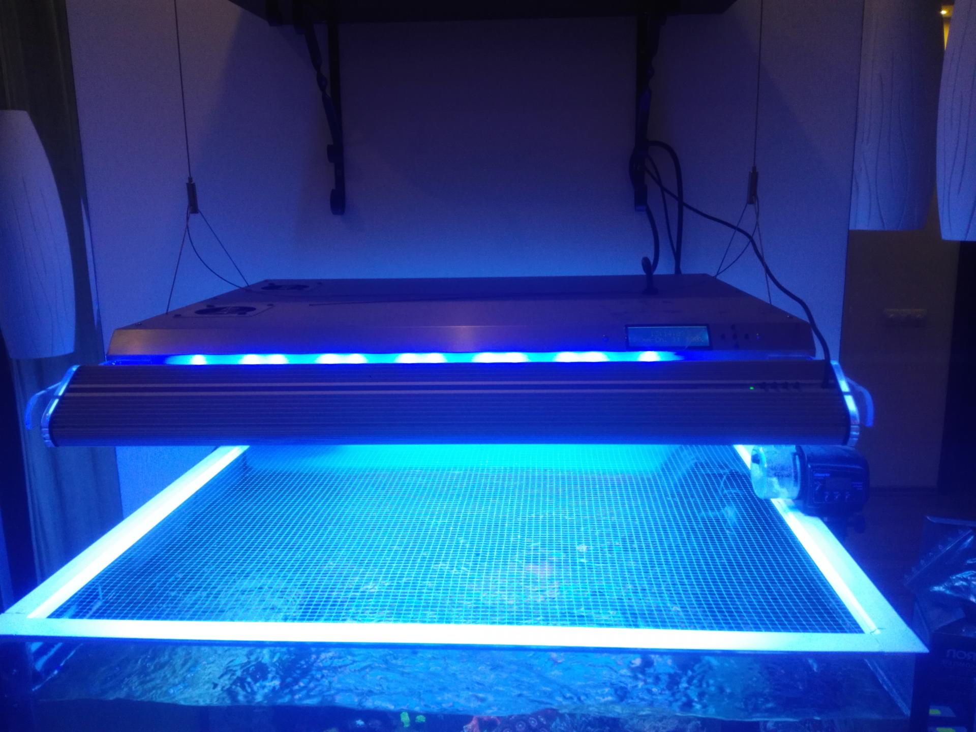 У меня руки растут не оттуда, и вообще хотела чтобы смотрелось красиво, без колхоза, поэтому заказала готовую досветку в Украине, у меня Ати Санпауер 8х24 вт. К нему на акриловых креплениях всё и закрепили, смотрится очень красиво, я довольна как слон, от контроллера рассветы/закаты/луна, все есть. Вышло недорого, суммарная мощность около 30 вт, 12 штук роял блю по 2.4 каждый на токе 700ма.