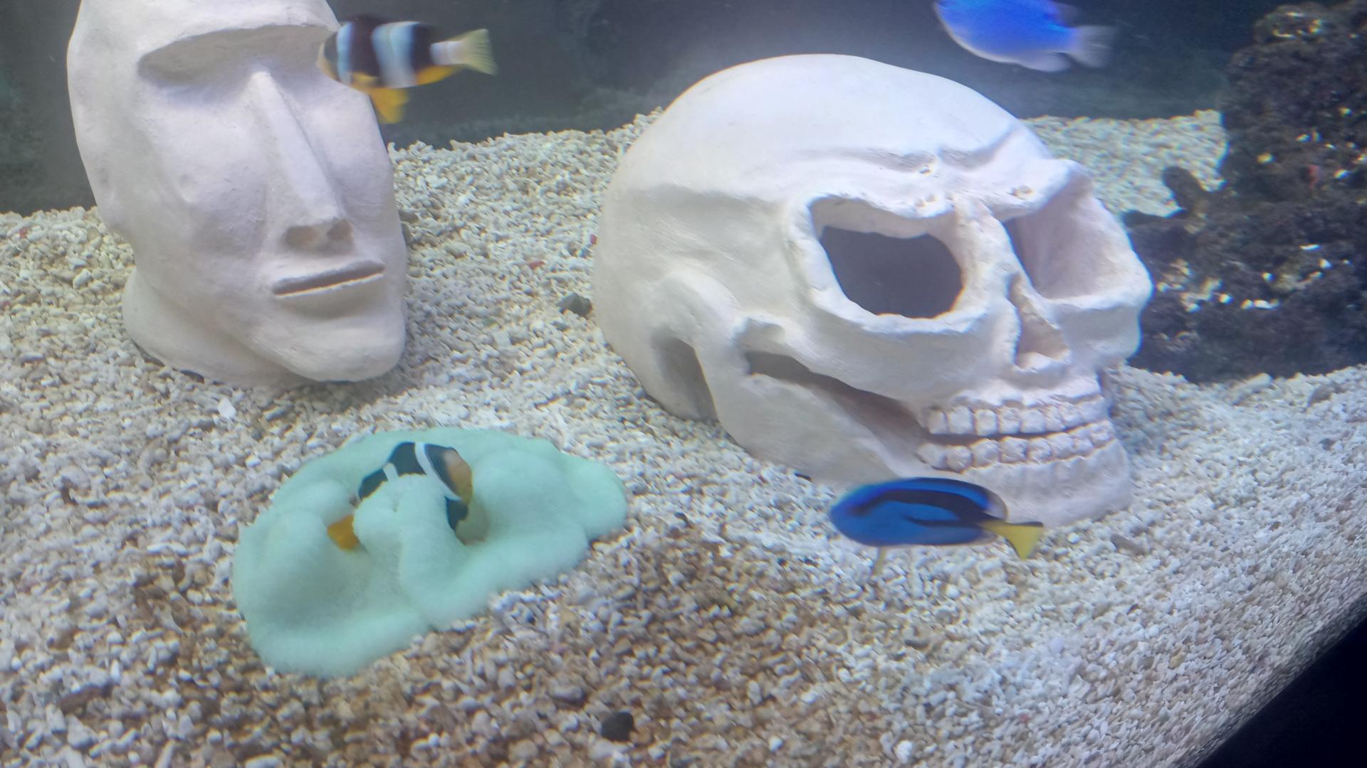 Хотя теперь он ни на шаг не отходит от аквариума, играет с его жителями, а они с ним