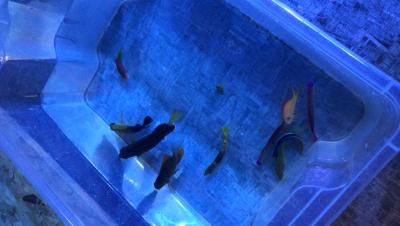 аквариум 2,2 метра, вся рыба раскормлена и у меня от 6 до 12 месяцев.