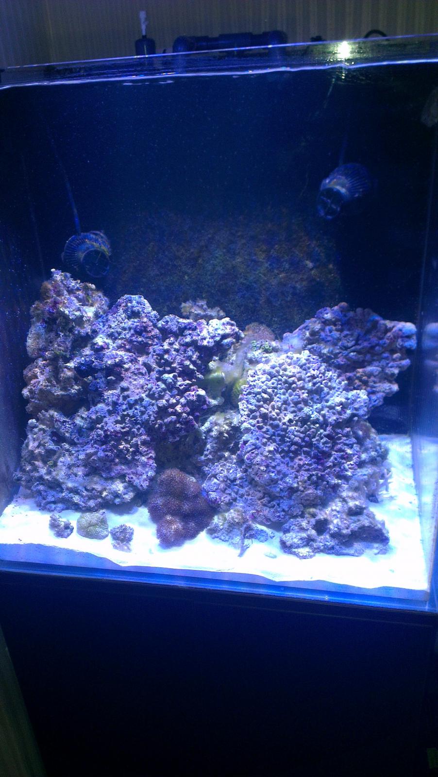 В конце сентября засыпал песок, досыпал ещё 10кг ЖК, привёз немного беспов (преимущественно ядовитых, как выяснилось) и ЖК прямо из океана. Тогда же был включен исвет.